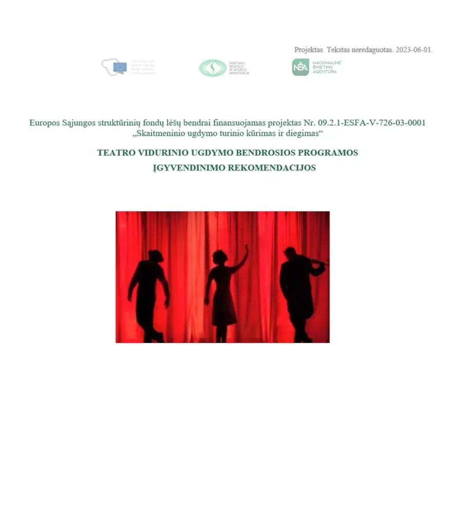 Pateikiamos dalyko naujo turinio mokymo rekomendacijos, veiklų planavimo ir kompetencijų ugdymo pavyzdžiai, sudarytas skaitmeninių mokymosi priemonių sąrašas, kuriame pateikiamos priemonės padės įgyvendinti teatro bendrąją programą.