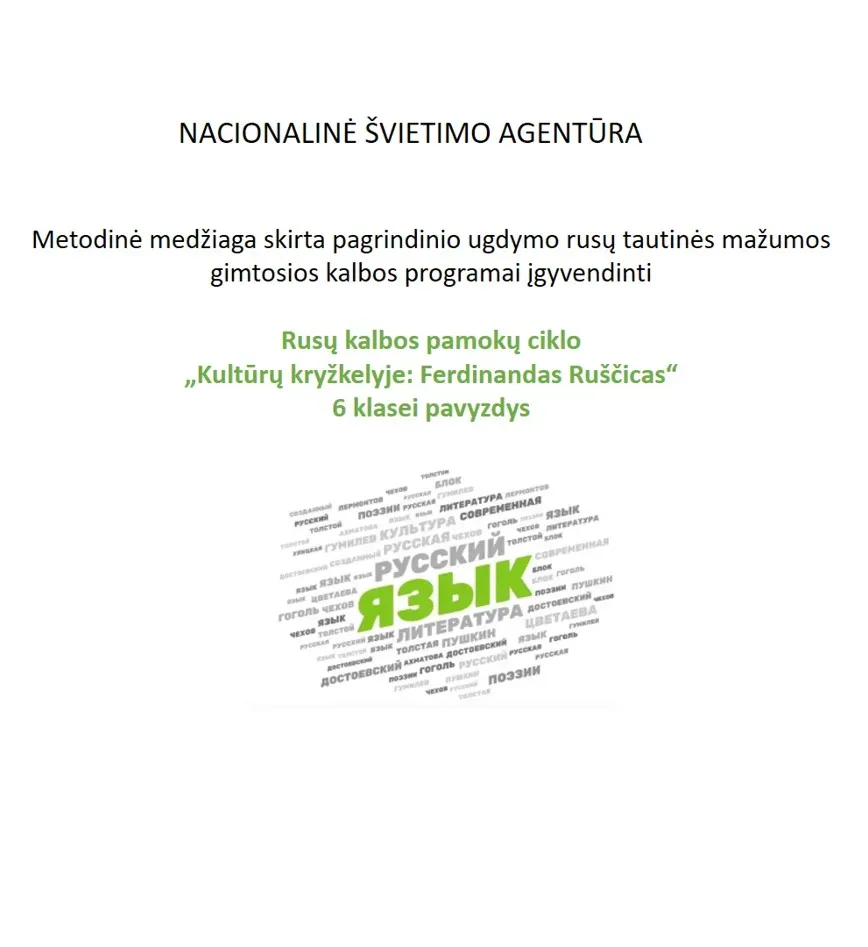 Rusų kalbos pamokų ciklo „Kultūrų kryžkelyje: Ferdinandas Ruščicas“ 6 klasei pavyzdys