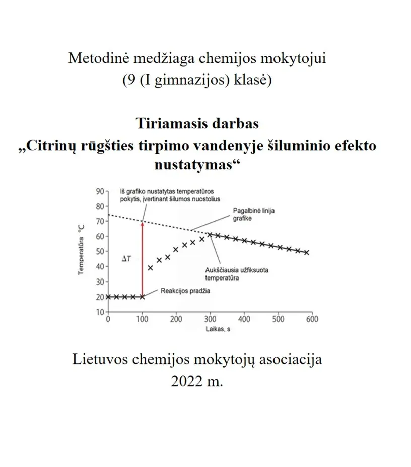 Tiriamasis darbas tema „Citrinų rūgšties tirpimo vandenyje šiluminio efekto nustatymas“ tinkamas chemijos mokytojams, dirbantiems su 9 (I gimnazijos) klasės mokiniais.