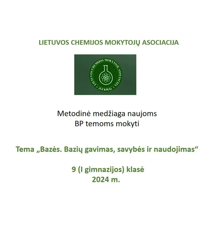 Lietuvos chemijos mokytojų asociacijos metodinė medžiaga tema „Bazės. Bazių gavimas, savybės ir naudojimas“