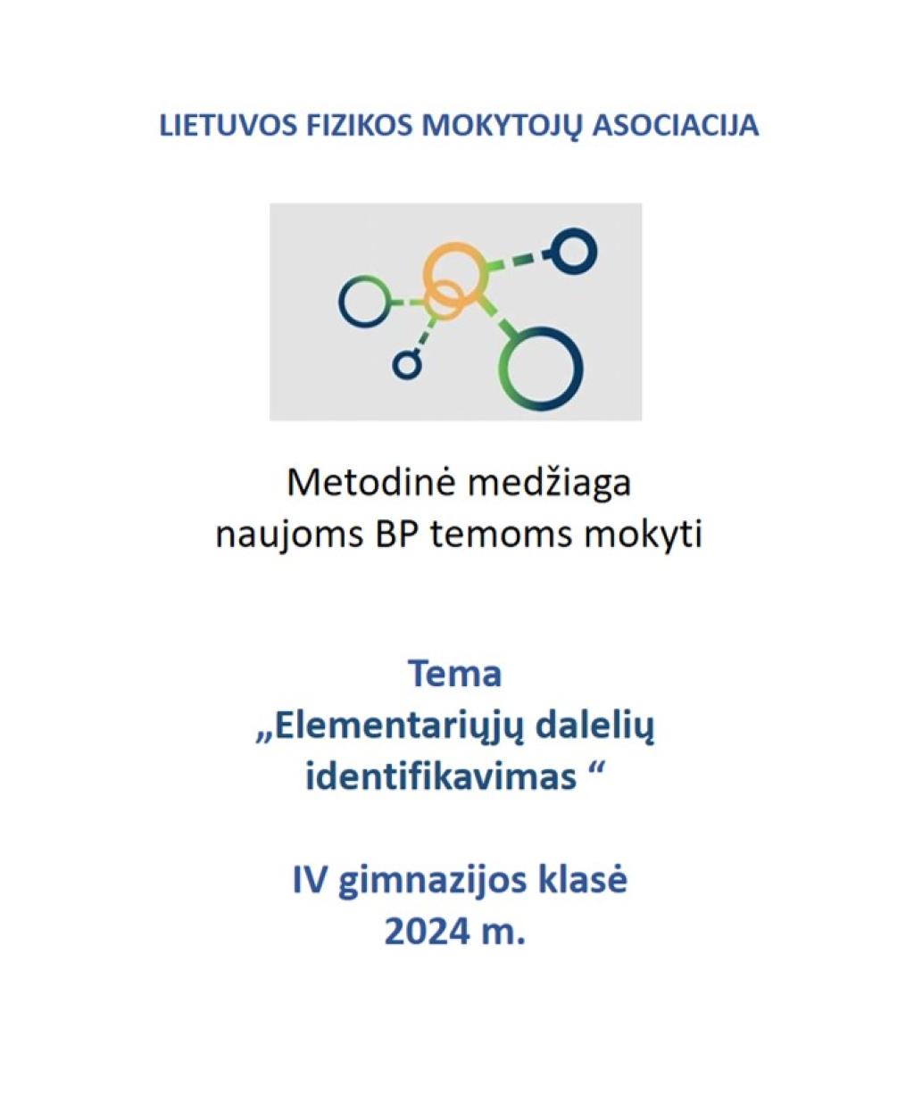 Lietuvos fizikos mokytojų asociacijos metodinė medžiaga (IV gimnazijos klasė), naujoms BP temoms mokyti. Tema „Elementariųjų dalelių identifikavimas“