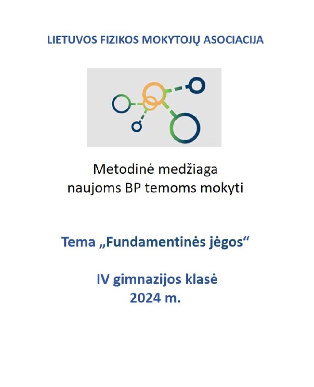 Lietuvos fizikos mokytojų asociacijos metodinė medžiaga (IV gimnazijos klasė), naujoms BP temoms mokyti. Tema „Fundamentinės jėgos“