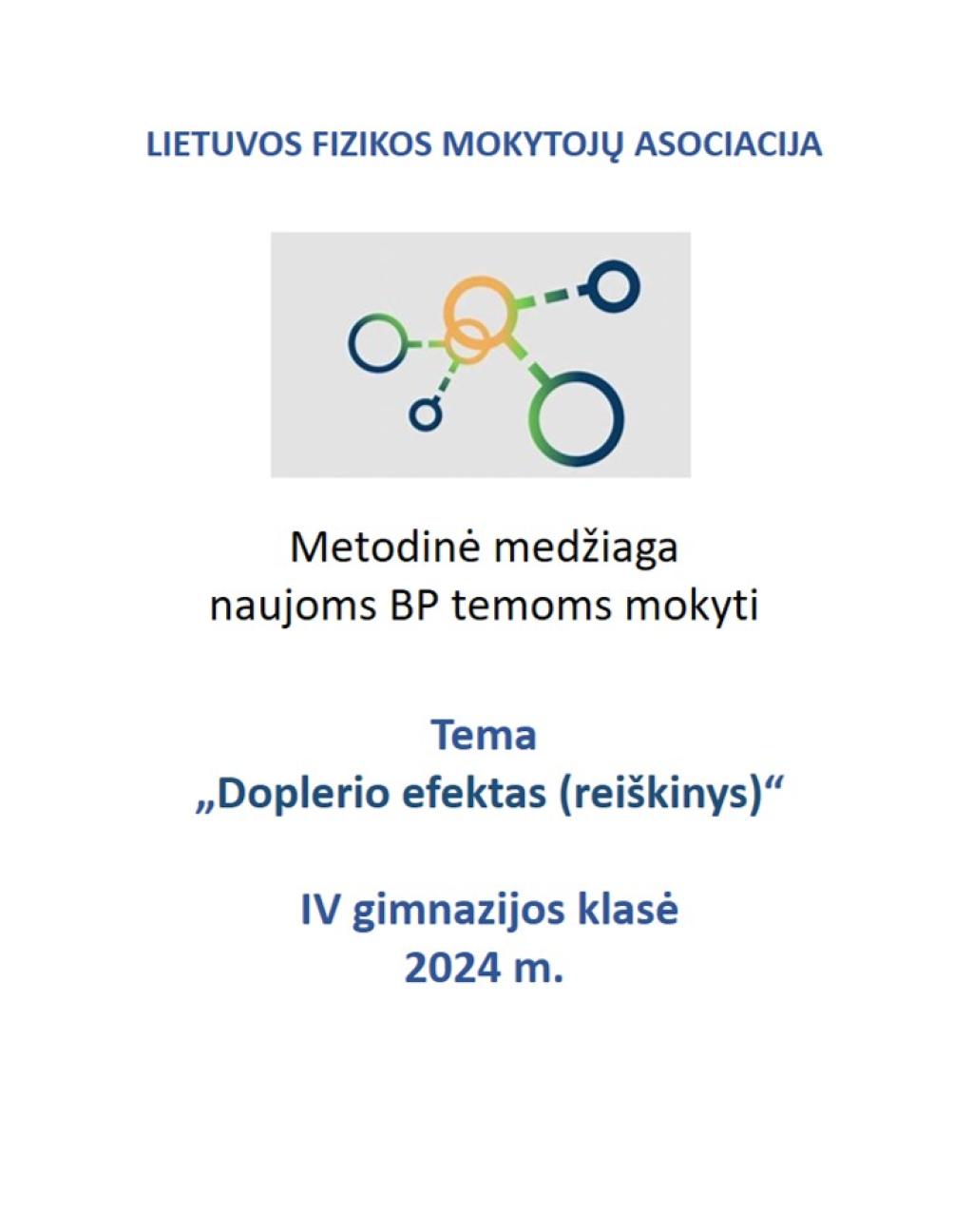 Lietuvos fizikos mokytojų asociacijos metodinė medžiaga (IV gimnazijos klasė), naujoms BP temoms mokyti. Tema „Doplerio efektas (reiškinys)“