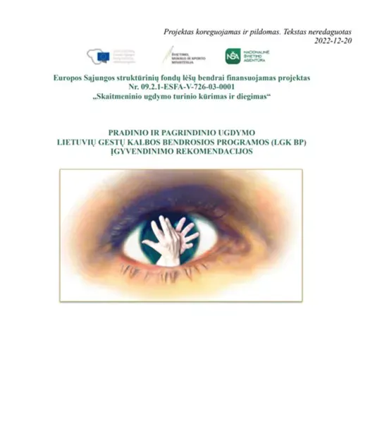 Pradinio ir pagrindinio ugdymo lietuvių gestų kalbos bendrosios programos įgyvendinimo rekomendacijos