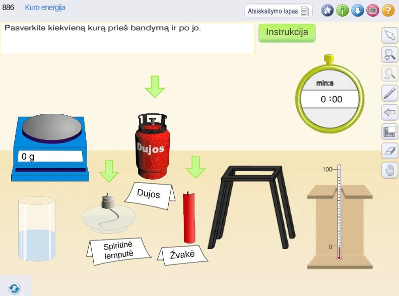 Skaitmeninėje mokymo priemonėje rasite interaktyvių mokymosi objektų: demonstracijų, tiriamųjų darbų ir testo užduotis, žinyną. Mokiniai savarankiškai ar mokytojo padedami galės stebėti nematomus objektus, ilgai ir akimirką trunkančius gamtos reiškinius, saugiai atlikti bandymus.