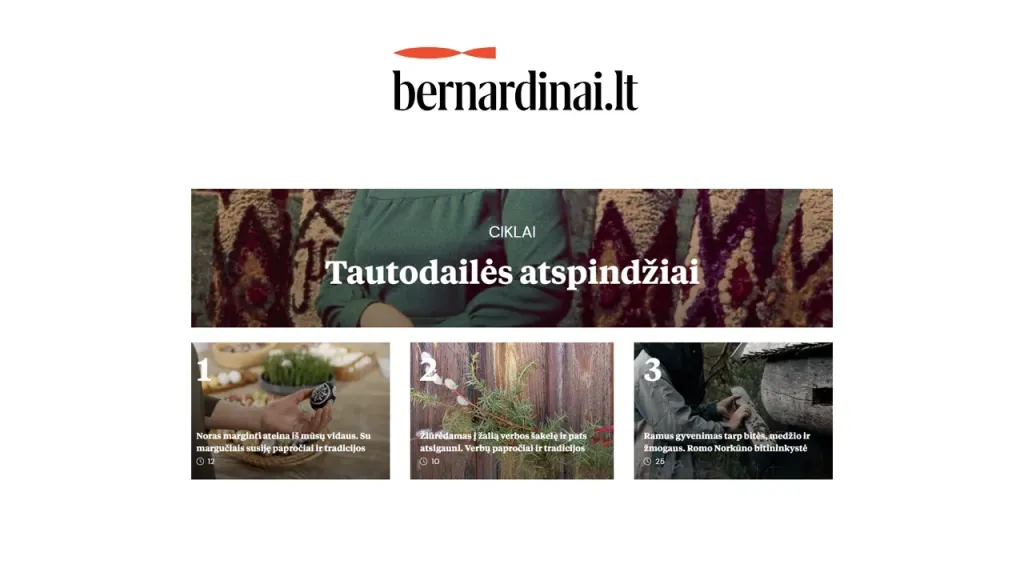 Tekstai ir vaizdo pasakojimai apie tautodailininkus ir jų amatą.