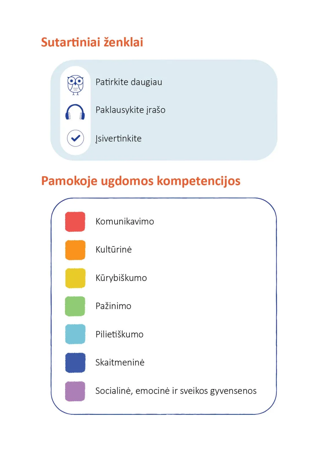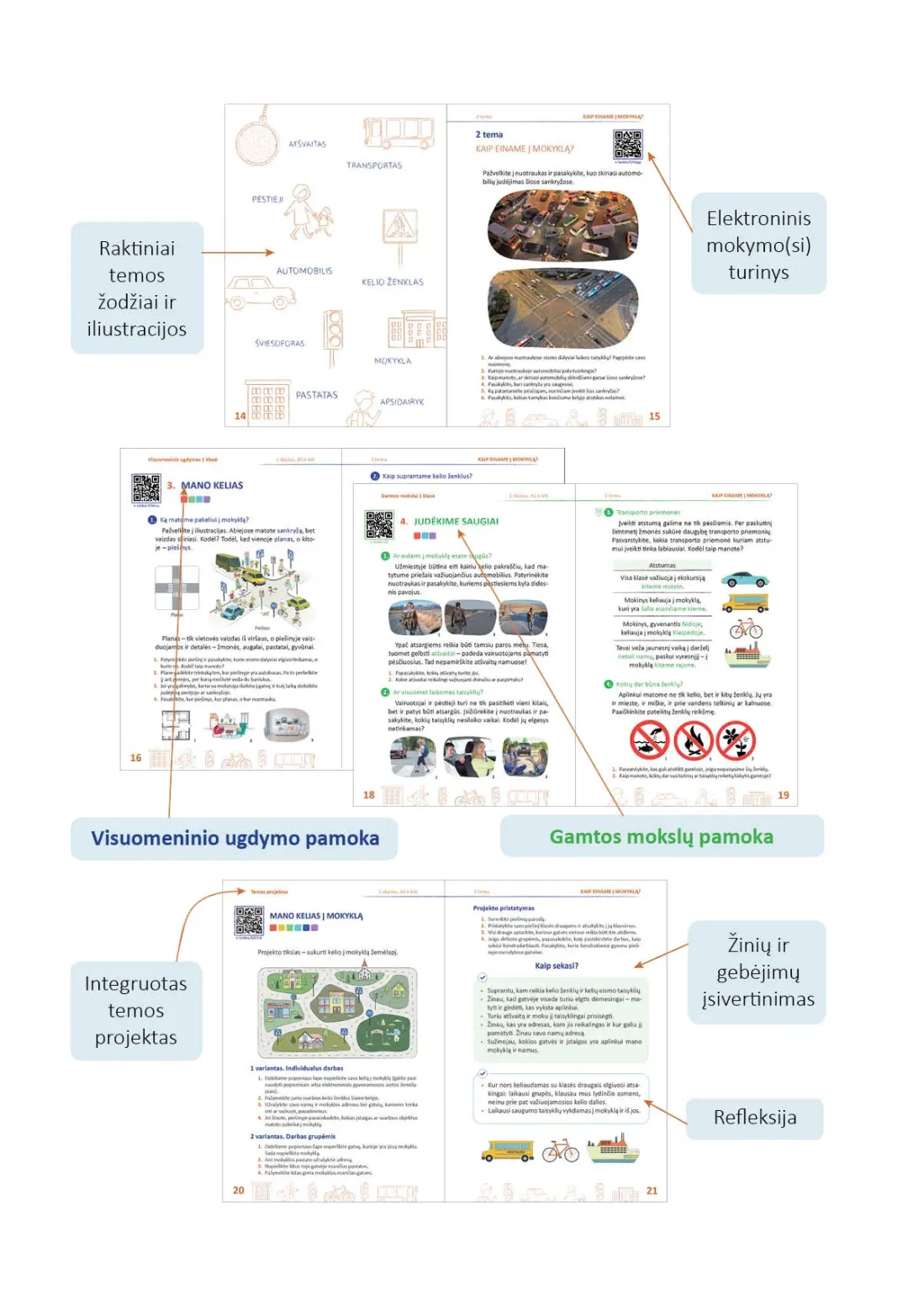 Visi būtini vadovėlio priedai – padidintos iliustracijos, dalomoji medžiaga, garso įrašai – lengvai pasiekiami jungiantis per trumpąją nuorodą arba QR kodą ne tik mokykloje, bet ir namuose.
