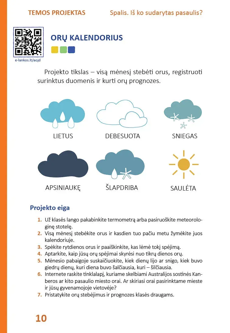 Spalio mėnesio vadovėlyje „Iš ko sudarytas pasaulis?“ nagrinėjamos trys temos: „Iš oro ir vandens“, „Iš žemės ir ugnies“, „Kaip susitinka oras, vanduo, žemė ir ugnis?“. Kiekvieną temą vainikuoja projektas, skatinantis ir mokantis fantazuoti, kurti, bendradarbiauti ir praktiškai pritaikyti įgytas žinias, gebėjimus.