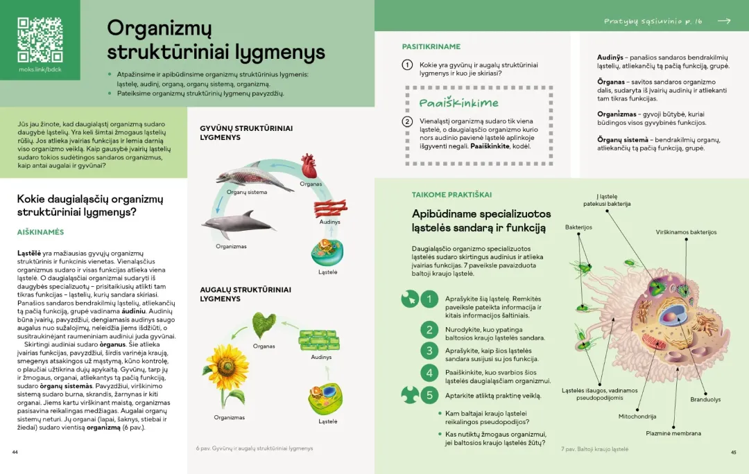 Laidiniuose išskirtos ir paaiškintos temos sąvokos, pateikti mokymosi etapai. Skaitmeninis turinys vadovėlyje pateiktoms užduotims atlikti ar susipažinti su papildoma informacija.