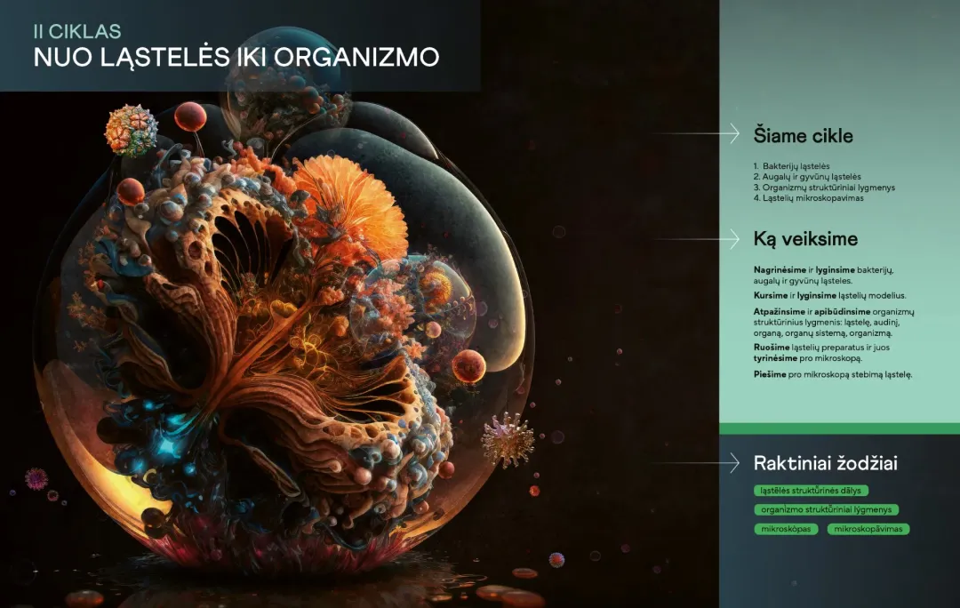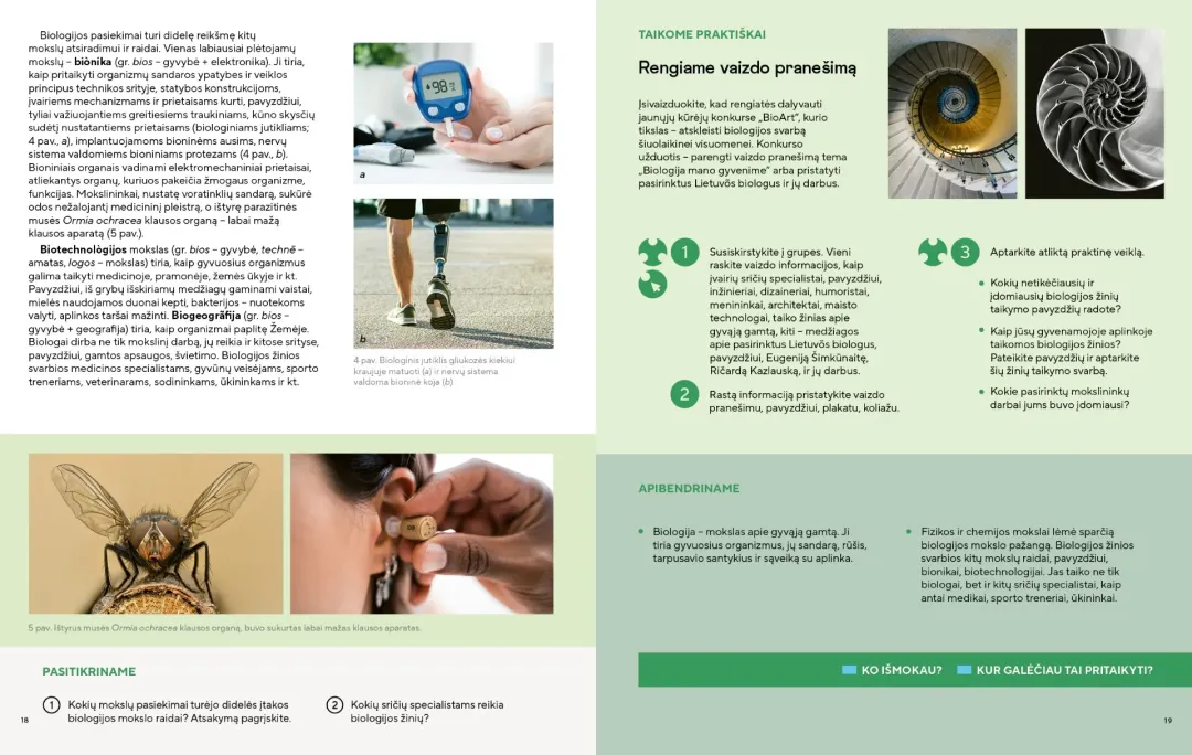 Leidiniuose temos pradžioje pateikiamos mokymosi gairės, pabaigoje – praktinės kūrybinės taikymo užduotys. Teorinę medžiagą papildo ir iliustruoja informatyvūs informaciniai grafikai, diagramos, paveikslai, nuotraukos. Mokymosi turinys siejamas su tarpdalykiniu, kultūriniu biologijos mokslo kontekstu. Tiriamiesiems ir kūrybiniams gebėjimams ugdyti suformuotas reiškinio tyrimo projektas „Gyvybės galia“.