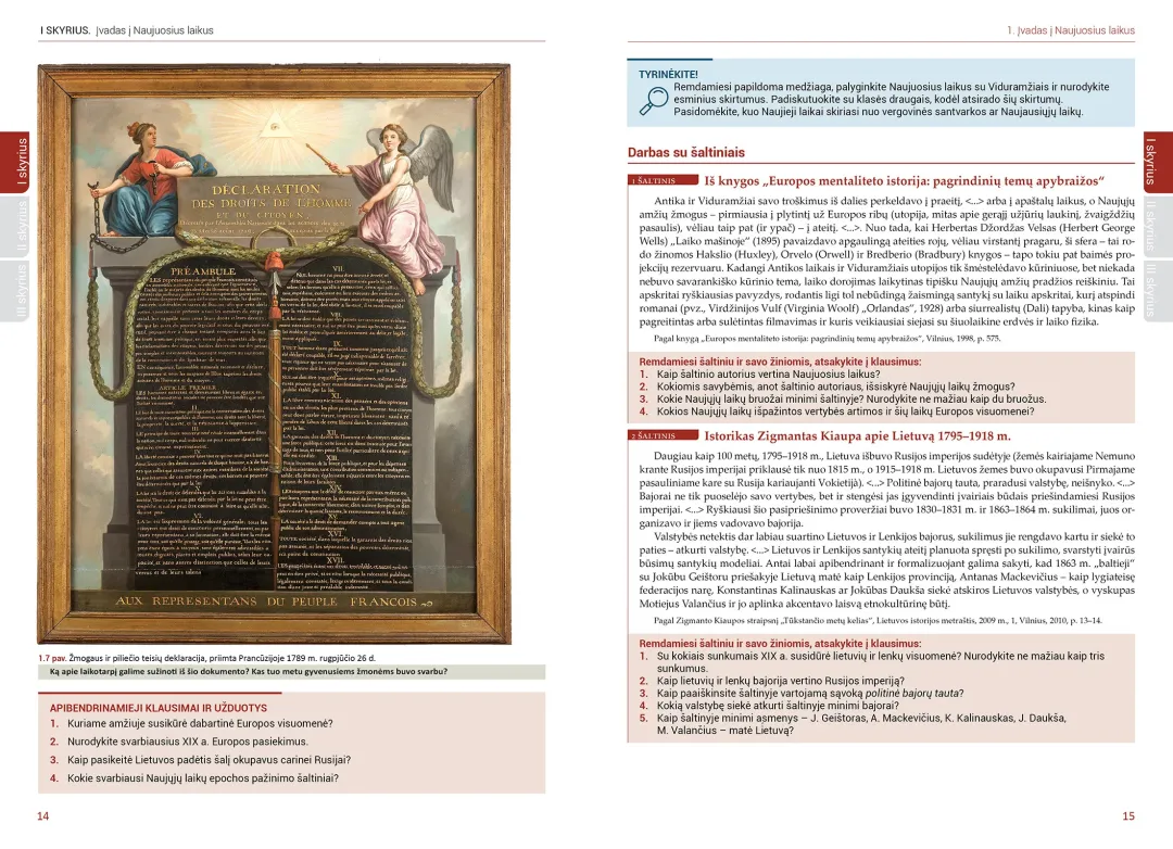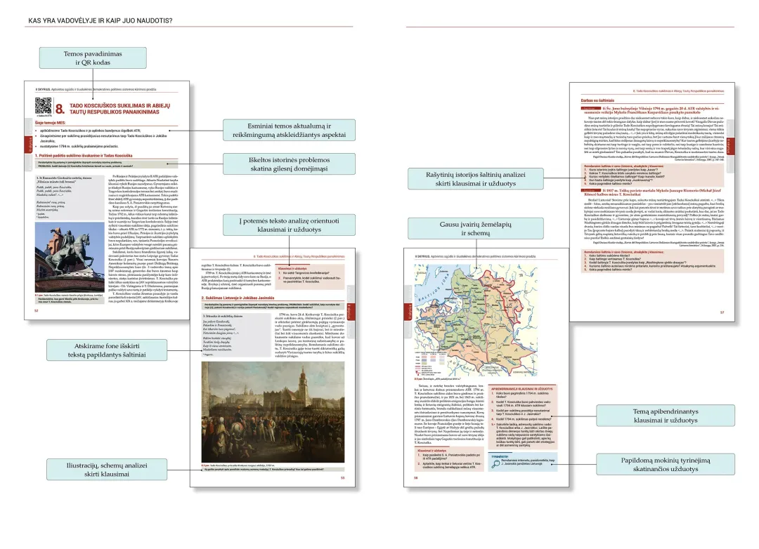 Vadovėlyje didelis dėmesys skiriamas užduotims, kompetencijų ugdymui. Diferencijuotos užduotys leidžia individualizuoti mokymą, o daugybė šaltinių ir vaizdinė medžiaga padeda išsamiau apžvelgti gvildenamą temą.