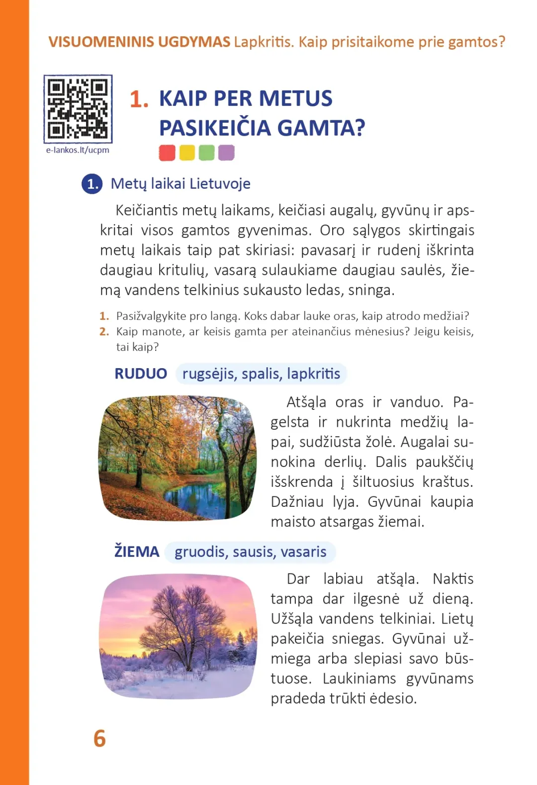 Kaip prisitaikome prie gamtos? Lapkritis. 1 klasė. Integruotas vadovėlis „Vaivorykštė“, 3 dalis