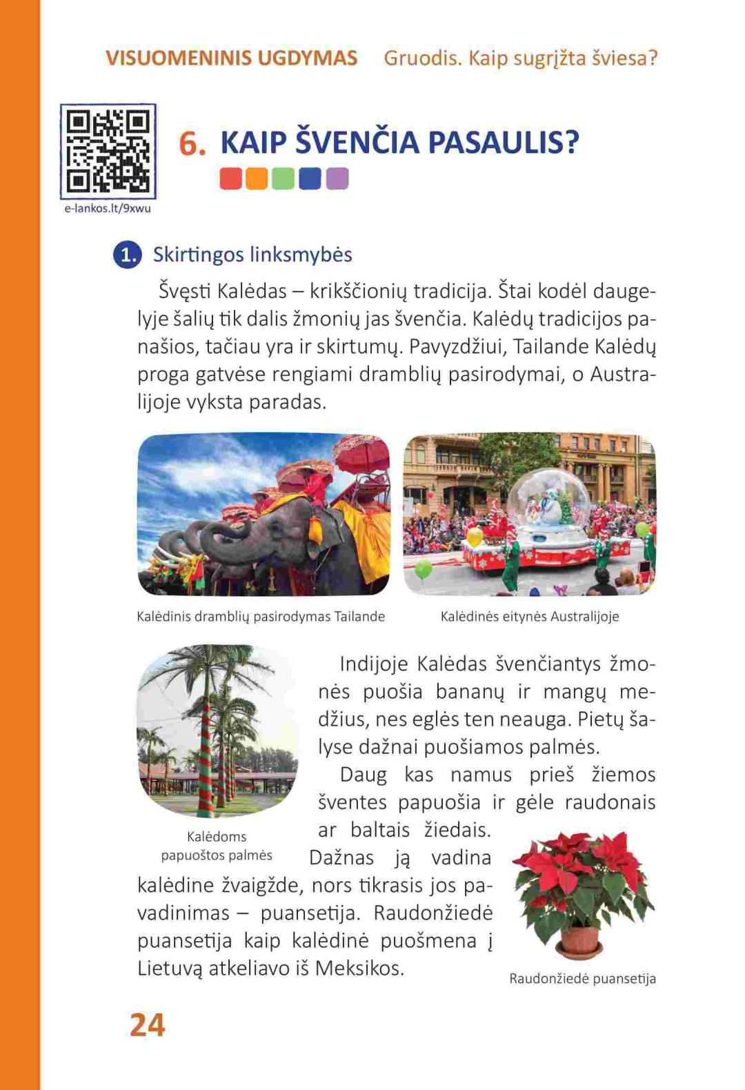 Integruotas vadovėlis atliepia kiekvieno mokomojo dalyko ugdymo programą, siekia joje numatytų tikslų ir uždavinių, didelis dėmesys skiriamas kompetencijų ugdymui. Gruodžio mėnesio vadovėlyje „Kaip sugrįžta šviesa?“ nagrinėjamos trys temos: „Kaip šventės susijusios su gamtos pokyčiais? “, „Kodėl susirenkame švęsti?“, „Kalėdų tradicijos“. Kiekvieną temą vainikuoja projektas, skatinantis ir mokantis fantazuoti, kurti, bendradarbiauti ir praktiškai pritaikyti įgytas žinias, gebėjimus.