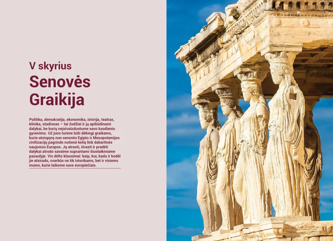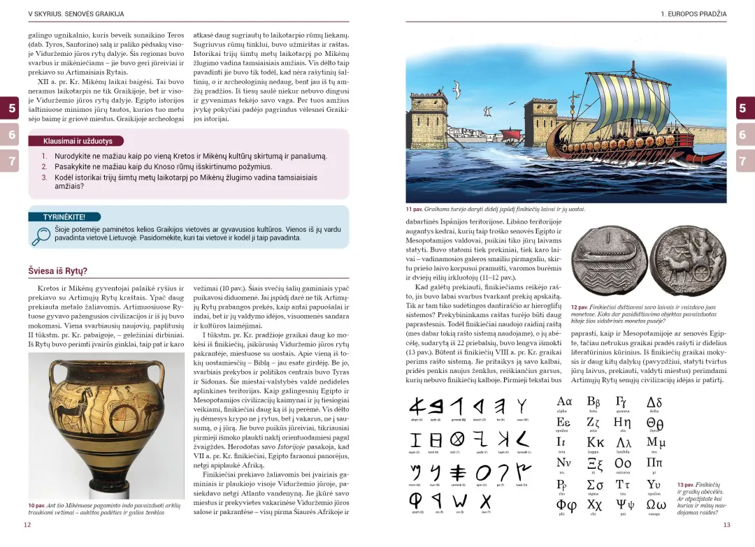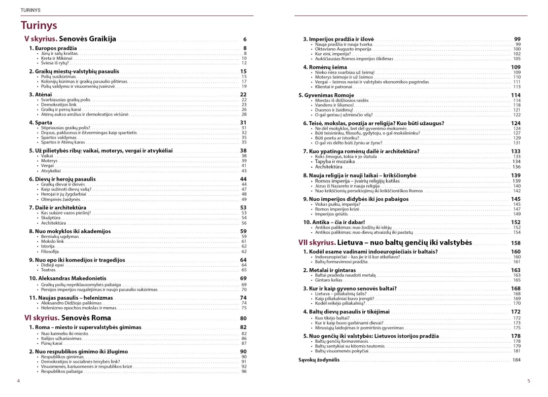 Vadovėlyje gausu rašytinių šaltinių. Dauguma jų versti iš senųjų kalbų, todėl mokiniai galės labiau įsitraukti į analizuojamus istorijos klausimus. Taip pat gausu vaizdinės medžiagos, kuri praplečia supratimą, skatina vaizduotę. Temos struktūruotos: kiekvienos temos pradžioje pateikti pagrindiniai uždaviniai, yra potemės, padedančios suvokti ir įsisavinti medžiagą. Daug įvairaus tipo ir sudėtingumo užduočių.