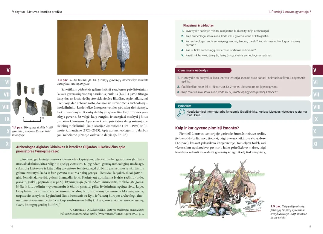 Pagal 2022 m. atnaujintą Istorijos bendrąją programą parengtame vadovėlyje 5 klasės mokiniai kviečiami tapti jaunaisiais istorijos tyrinėtojais – stebėti ir aptarti greta esančius istorijos paminklus, senus statinius, keliauti per istorijos epochas, nagrinėti istorines problemas ir rasti istorinių naujovių. Kartu tai kvietimas pasikalbėti apie dabartį ir ateitį. II vadovėlio dalyje mokiniai susipažins su svarbiausiais Lietuvos istorijos pasakojimais: nuo pirmųjų žmonių apsigyvenimo dabartinėje Lietuvos teritorijoje iki mūsų valstybės atkūrimo 1990 metais.