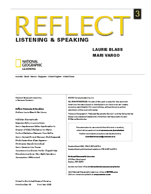 „Reflect Listening & Speaking B1“ gali būti naudojamas kaip pagrindinis vadovėlis arba kaip papildoma akademinė mokymo priemonė klausymo ir kalbėjimo įgūdžių lavinimui. Vadovėlis tinkamas ugdyti šio lygio atnaujintoje Bendrojoje programoje numatytas užsienio (anglų) kalbos dalyko ir bendrąsias kompetencijas. Tikslingai orientuotas į akademinių pasiekimų lavinimą. Tai unikali, inovatyvi mokymo priemonė, kurios turinys ir veikla sudaryta siekiant ugdyti mokinių pasaulinę kompetenciją, socialinį bei emocinį mokymąsi ir įgūdžius, reikalingus XXI amžiuje. Mokiniai skatinami pažinti įvairias idėjas, požiūrius, inicijuojamas jų kritinis mąstymas. Tai atlikdami, mokiniai ugdo savimonę, socialinį sąmoningumą ir savivaldaus mokymosi įgūdžius. Šio vadovėlio kalbinės raiškos elementai atliepia UTA principus.
