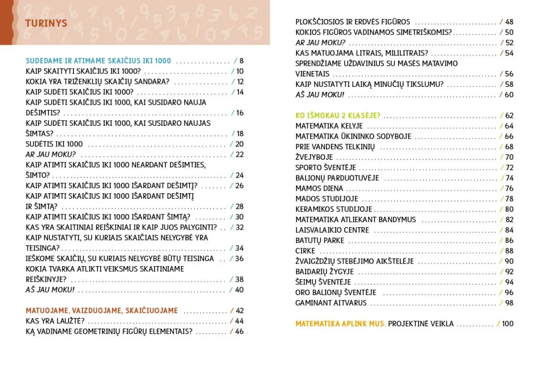 Matematikos vadovėlio komplektą 2 klasei sudaro: