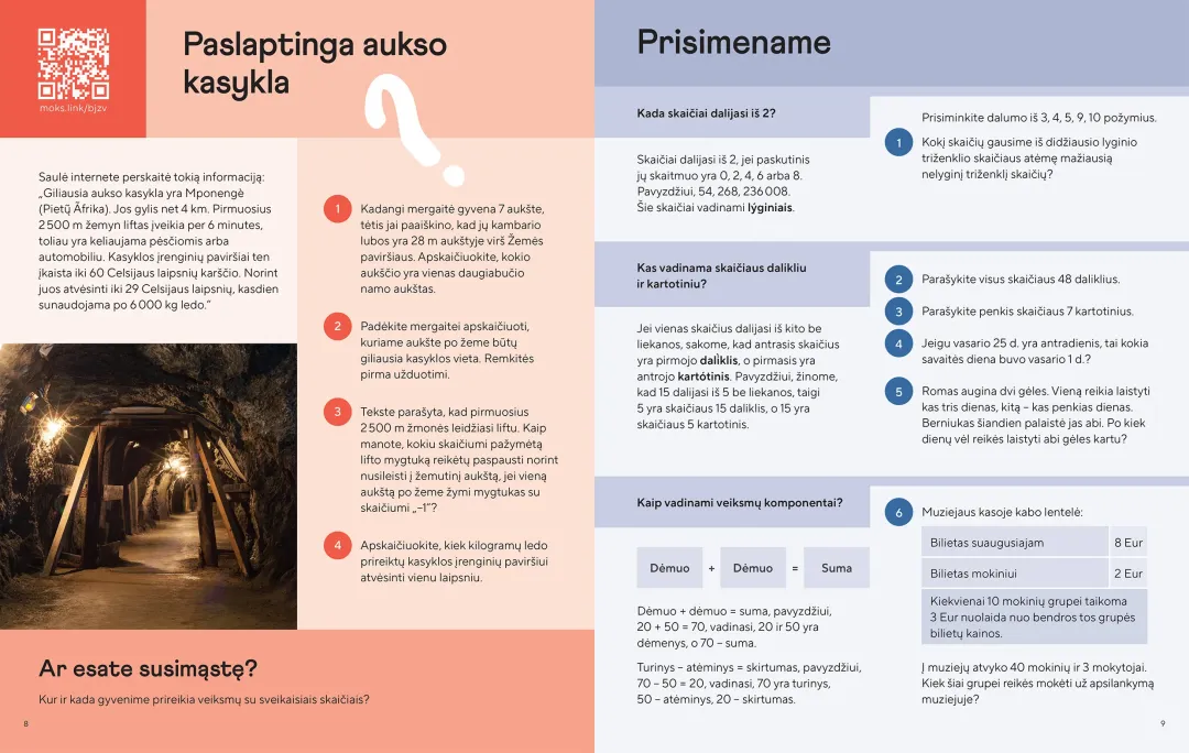 • daug skirtingų tipų ir sudėtingumo užduočių su patarimais, instrukcijomis, pavyzdžiais;