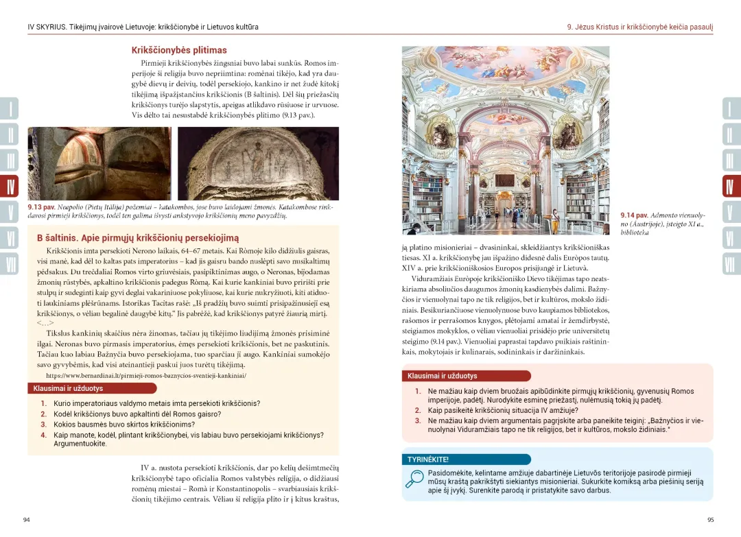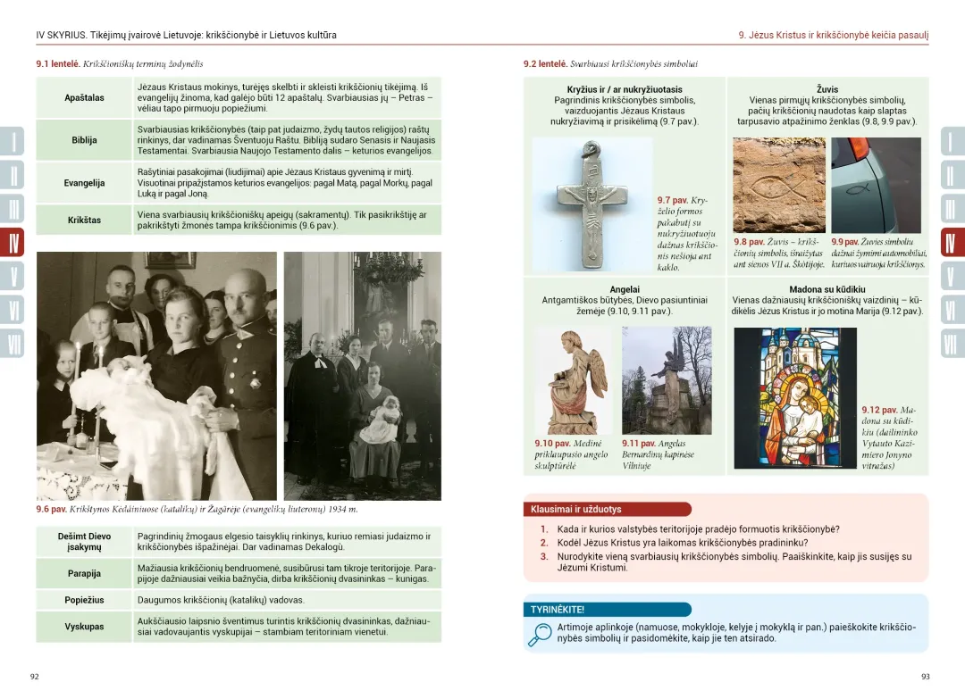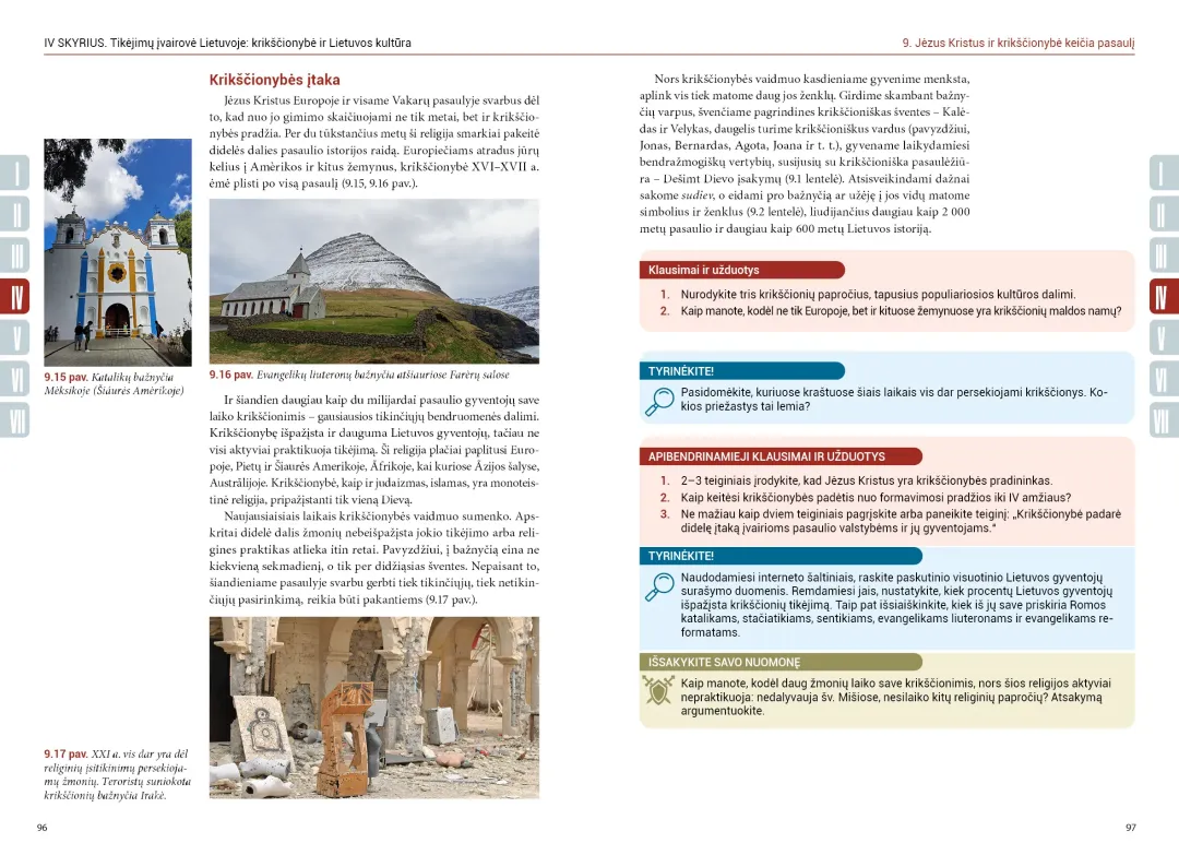 Vadovėlyje gausu įvairių užduočių, padedančių geriau suvokti išdėstytą medžiagą. Po kiekviena temos poteme – klausimai ir užduotys, po visa tema – apibendrinamieji klausimai, smalsumą skatinančios užduotys, kviečiančios dirbti savarankiškai, vertybiniai ir nuomonės klausimai. Vadovėlyje gausu vaizdinės medžiagos, autoriai savo tekstuose tiesiogiai bendrauja su skaitytoju, domisi jo nuomone, o užduodami nekasdienius klausimus skatina į įprastus istorijos dalykus pažvelgti kiek kitaip.