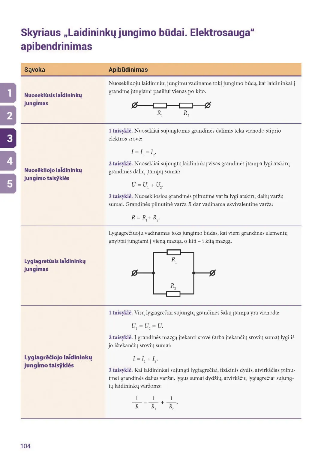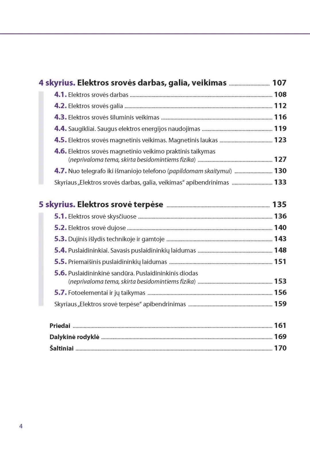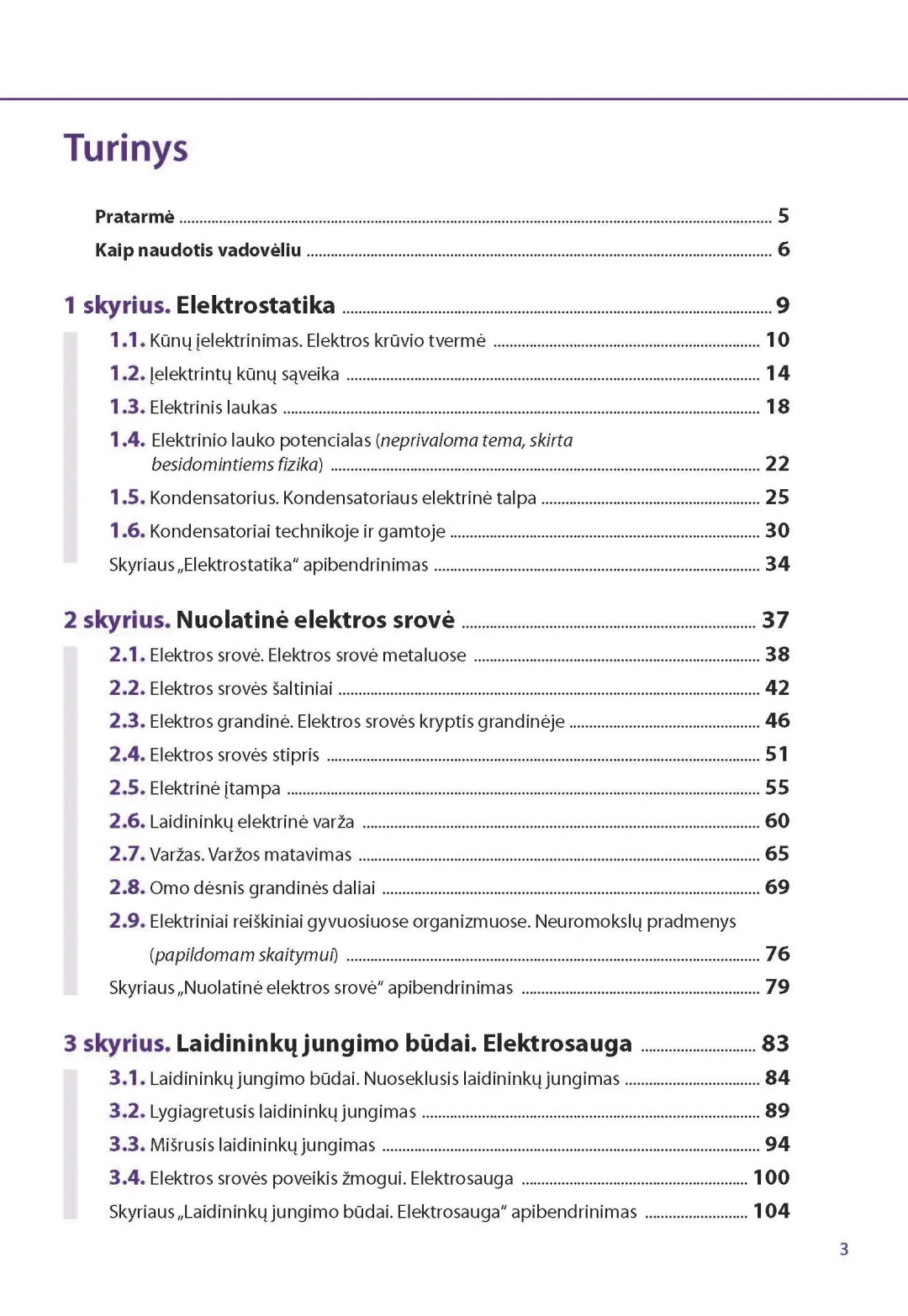 Fizikos vadovėlio 8 klasei pirmąją dalį sudaro penki skyriai: „Elektrostatika“, „Nuolatinė elektros srovė“, „Laidininkų jungimo būdai. Elektrosauga“, „Elektros srovės darbas, galia, veikimas“, „Elektros srovė terpėse“.
