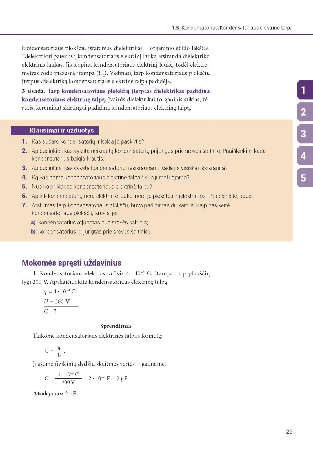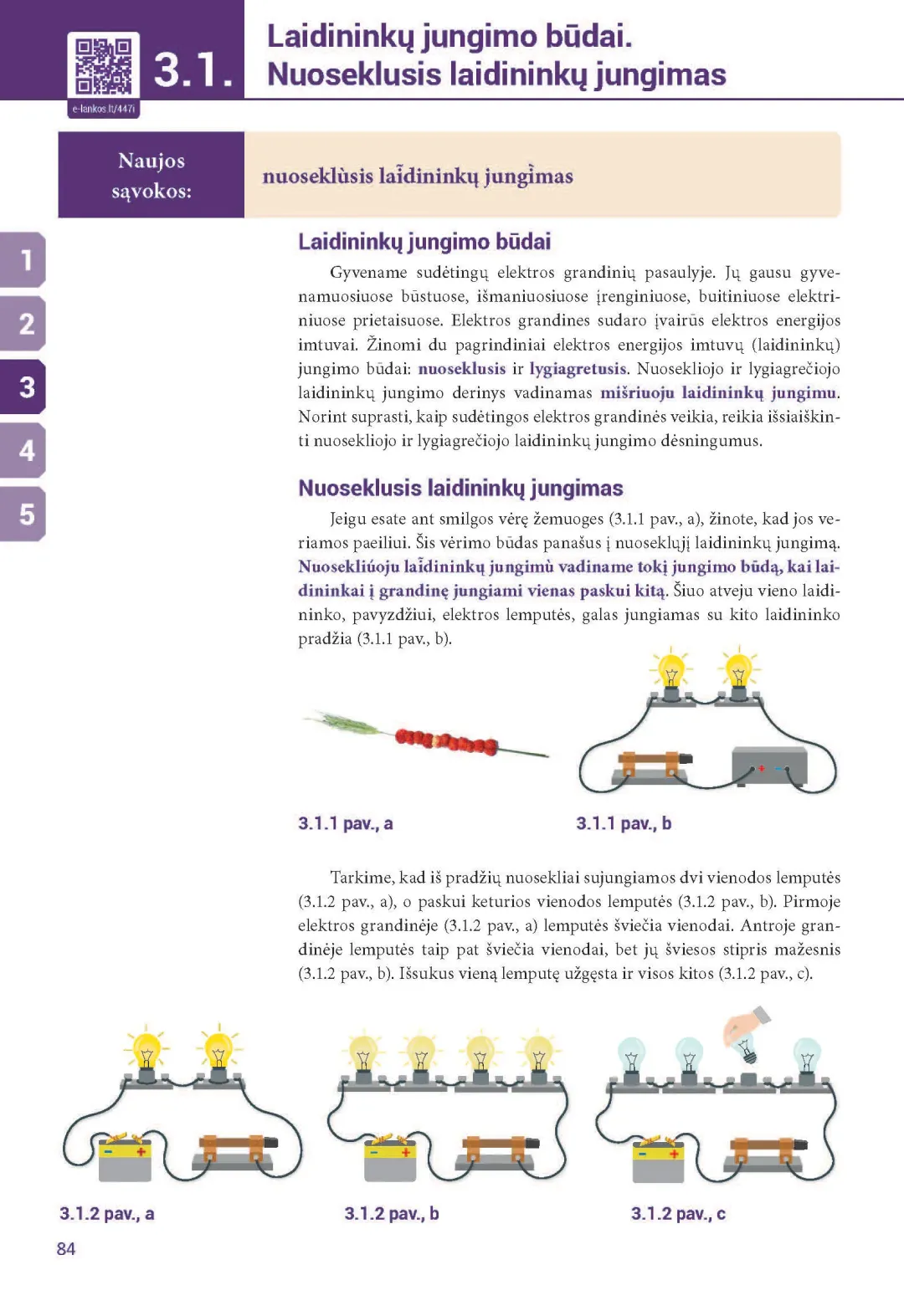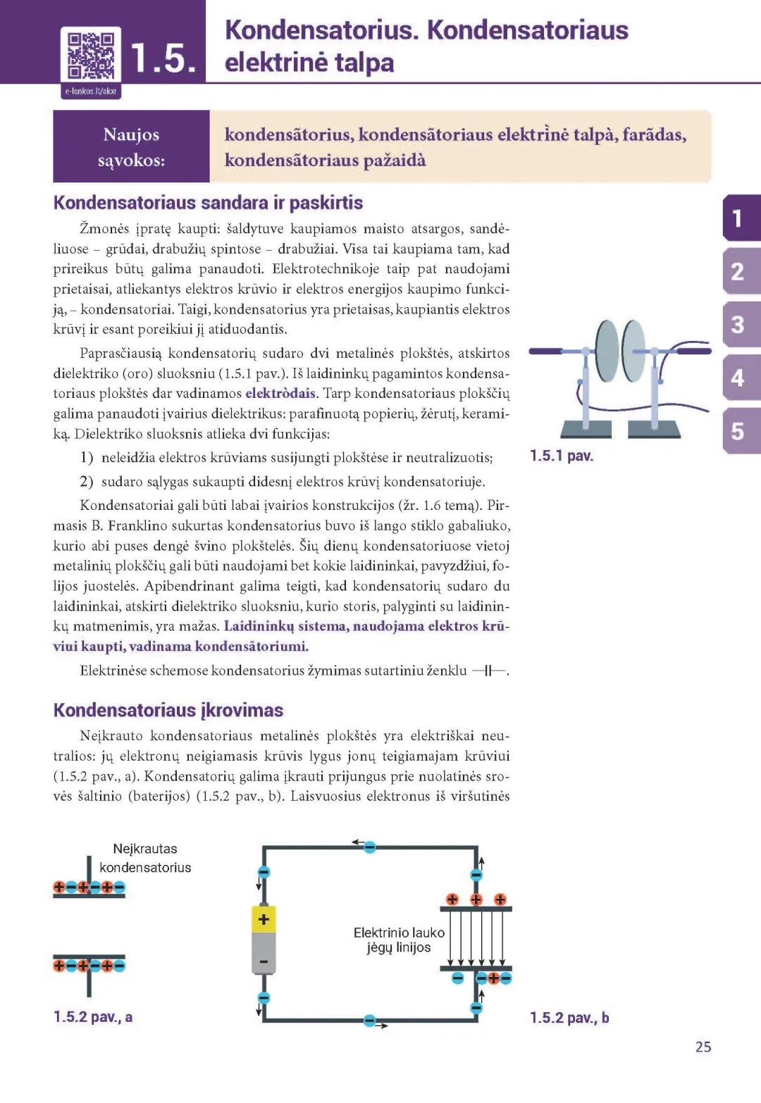Fizikos vadovėlio 8 klasei pirmąją dalį sudaro penki skyriai: „Elektrostatika“, „Nuolatinė elektros srovė“, „Laidininkų jungimo būdai. Elektrosauga“, „Elektros srovės darbas, galia, veikimas“, „Elektros srovė terpėse“.