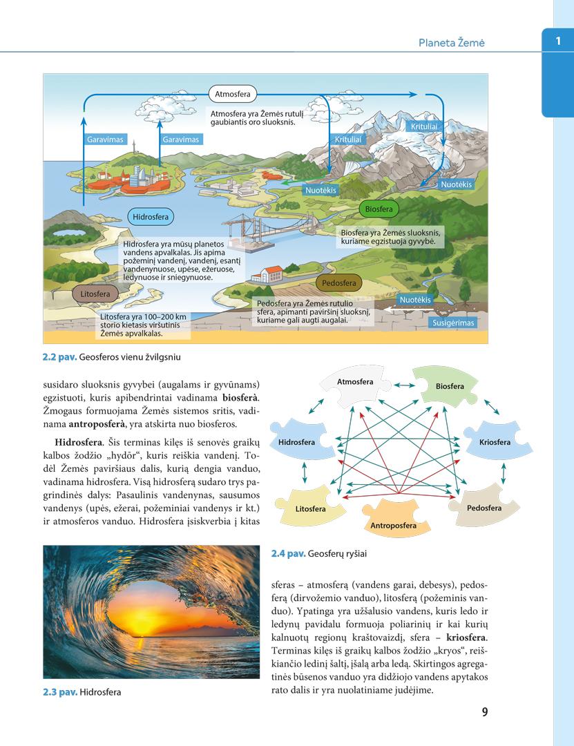 Kiekvieno skyriaus pabaigoje yra išsamus savikontrolės blokas, kuriame pateikiamos pagrindinės geografinės sąvokos, geografiniai teiginiai, akcentuojami privalomi praktiniai įgūdžiai, informacijos šaltiniai, pateikiama nemažai idėjų geografiniams tyrimams, nuorodų į skaitmeninius išteklius.