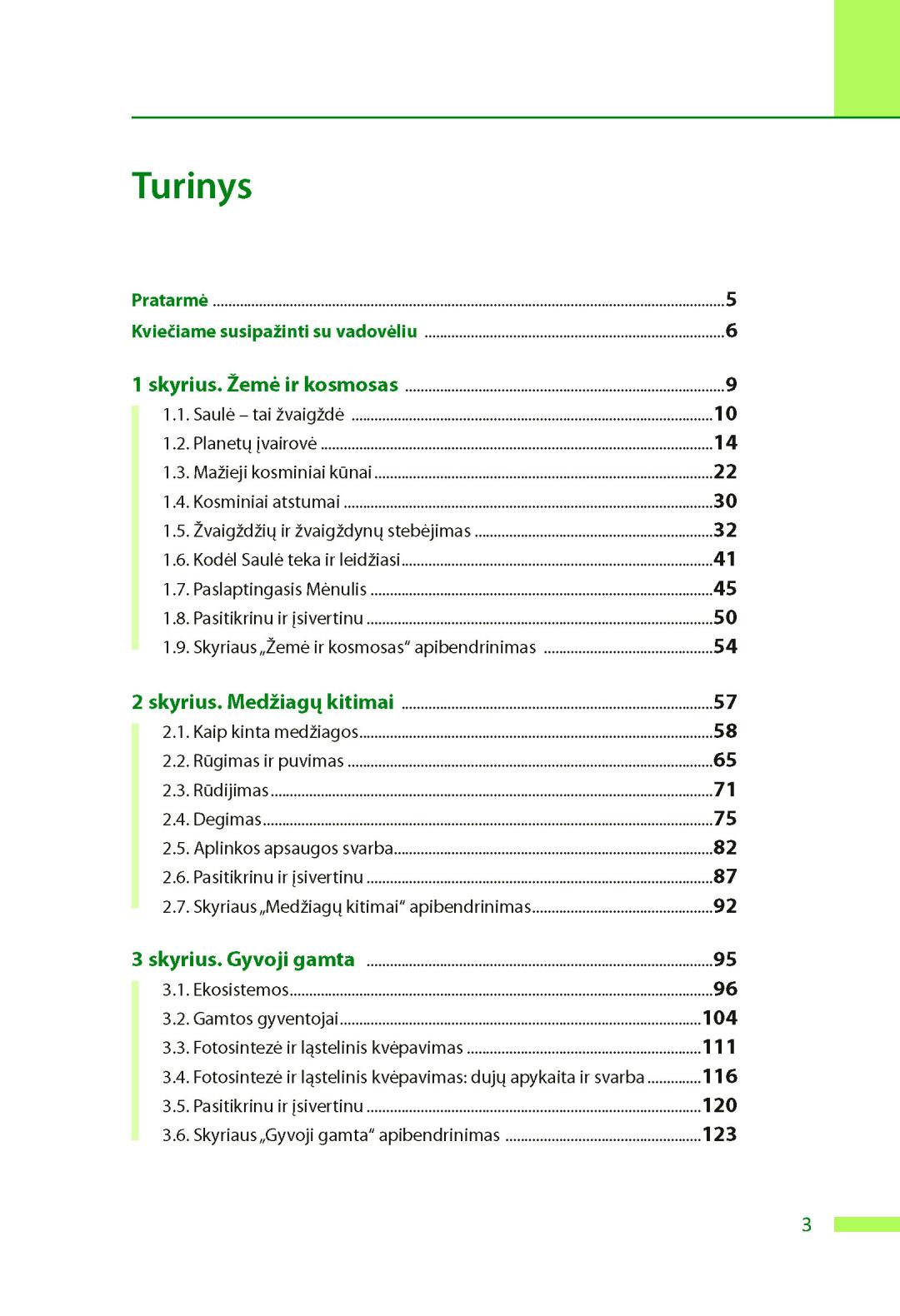 Žemė ir kosmosas, Žmogaus kūnas ir sveikata, Medžiagos, Organizmas ir aplinka, Judėjimas ir jėgos