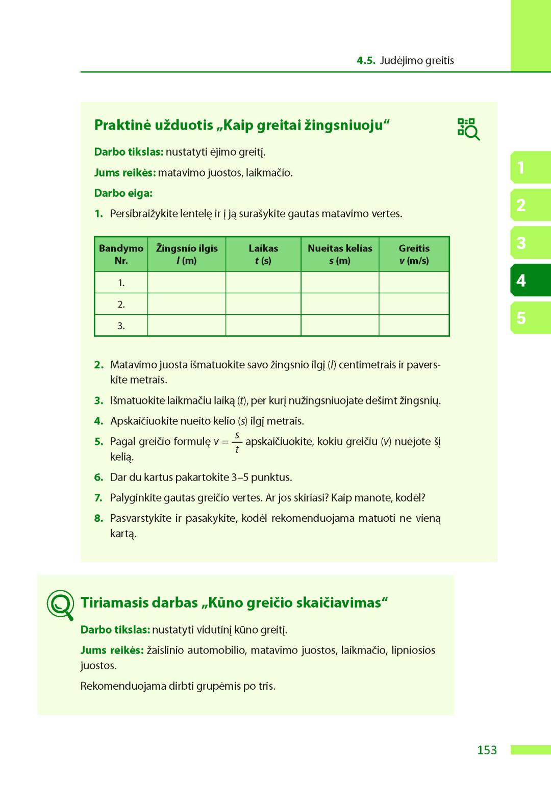 Vadovėlyje daug dėmesio skiriama praktinėms veikloms, skatinančioms taikyti įgytas žinias ir išsiugdytus gebėjimus, kelti klausimus, kūrybiškai mąstyti. Atliekant praktines veiklas, neprireiks specialių priemonių. Dalį tiriamųjų darbų mokiniai turės atlikti dirbdami poromis arba grupėmis, todėl stiprins socialinius ir emocinius įgūdžius.