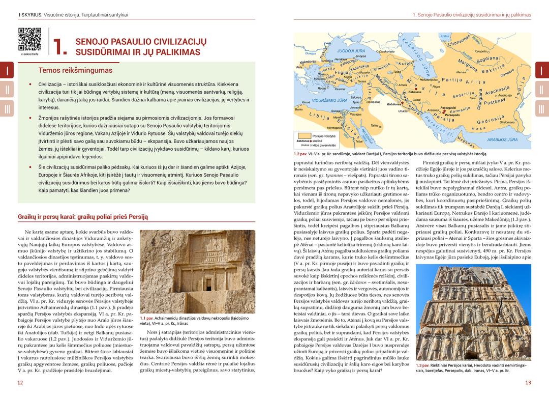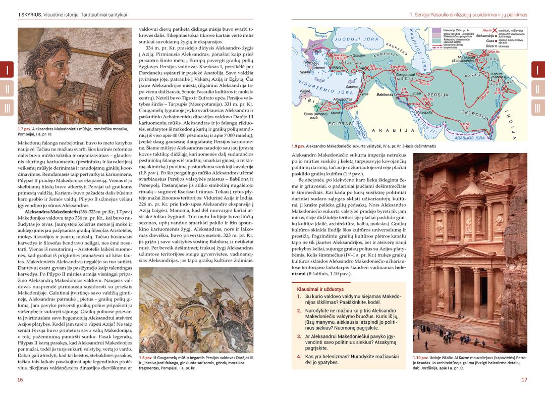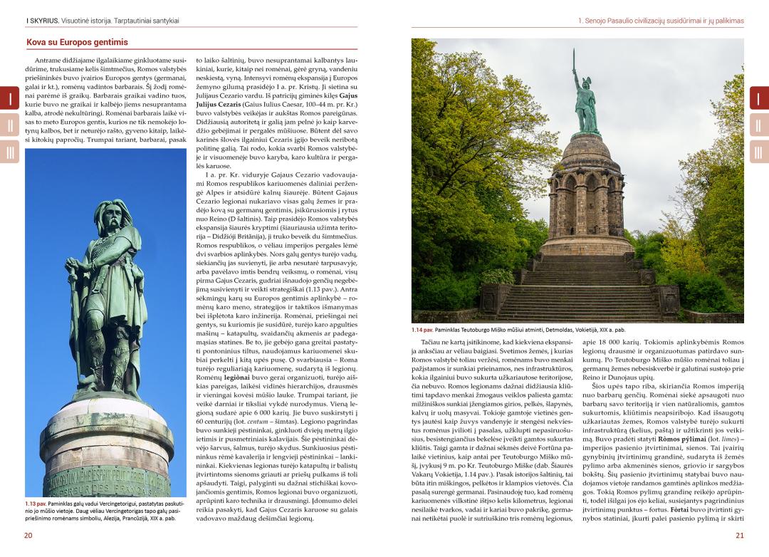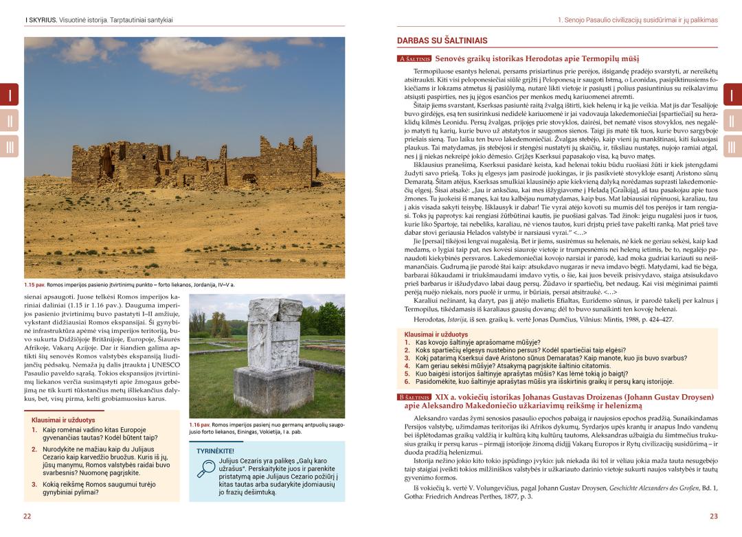 Autorinį vadovėlio tekstą papildo įvairūs kryptingai atrinkti rašytiniai šaltiniai, iliustracijos ir profesionaliai sudaryti žemėlapiai. Ši medžiaga lavina vaizduotę, padeda įsigilinti į analizuojamus istorijos klausimus, sudaro galimybę lyginti, susieti ir įvertinti skirtingus istorinius įvykius ir procesus. Dauguma istorijos šaltinių ir tekstų yra mažai žinomi arba iki šiol apskritai nenagrinėti, suteikiantys galimybę tyrinėti, mokytis analizuoti, skatinantys kritinį mąstymą ir platesnį požiūrį į istoriją.