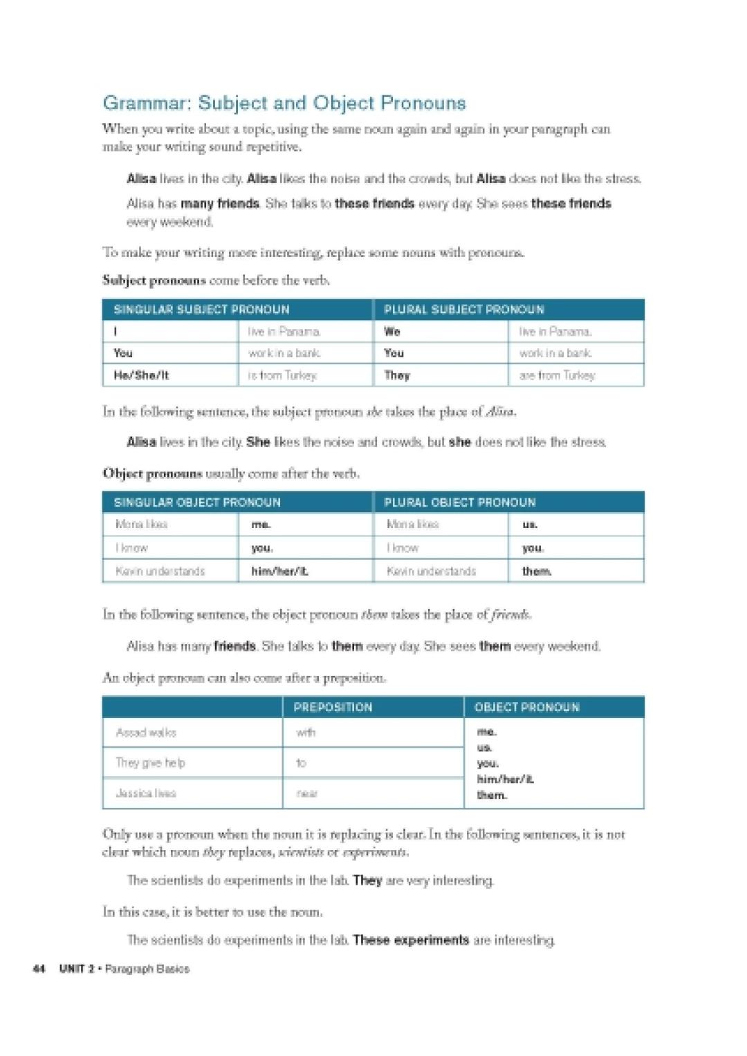 Kiekvieną skyrių užbaigia „TEST PREP“ skiltis skirta egzamino laiko planavimo įgūdžių lavinimui , kurioje mokiniams pateikiama užduotis IELTS© arba TOEFL© formate ir tikslūs paaiškinimai kaip atlikti užduotį per tam skirtą laiką. Vadovėlio pabaigoje pateikiamas žinynas, kuriame mokiniai gali rasti kalbinę terminologiją, nuoseklius rašymo proceso žingsnius, skyrybos ženklų, artikelių, jungtukų rašybą, sakinių tipus, naudingų žodžių ir frazių lentelę, veiksmažodžių formas ir vartoseną, patarimus atliekant testus, bendraklasių teksto redagavimo formas.