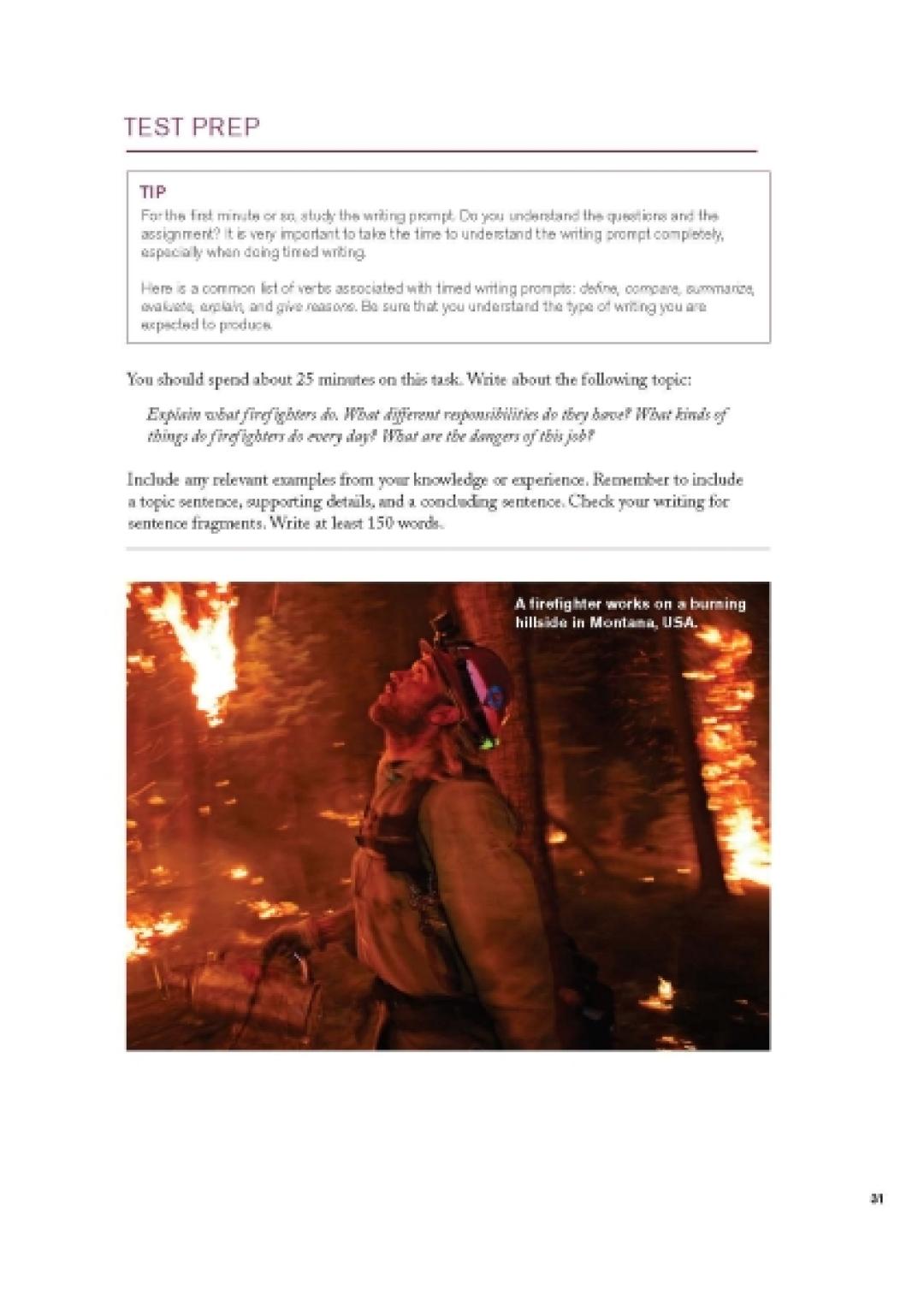 Kiekvieną skyrių užbaigia „TEST PREP“ skiltis skirta egzamino laiko planavimo įgūdžių lavinimui , kurioje mokiniams pateikiama užduotis IELTS© arba TOEFL© formate ir tikslūs paaiškinimai kaip atlikti užduotį per tam skirtą laiką.