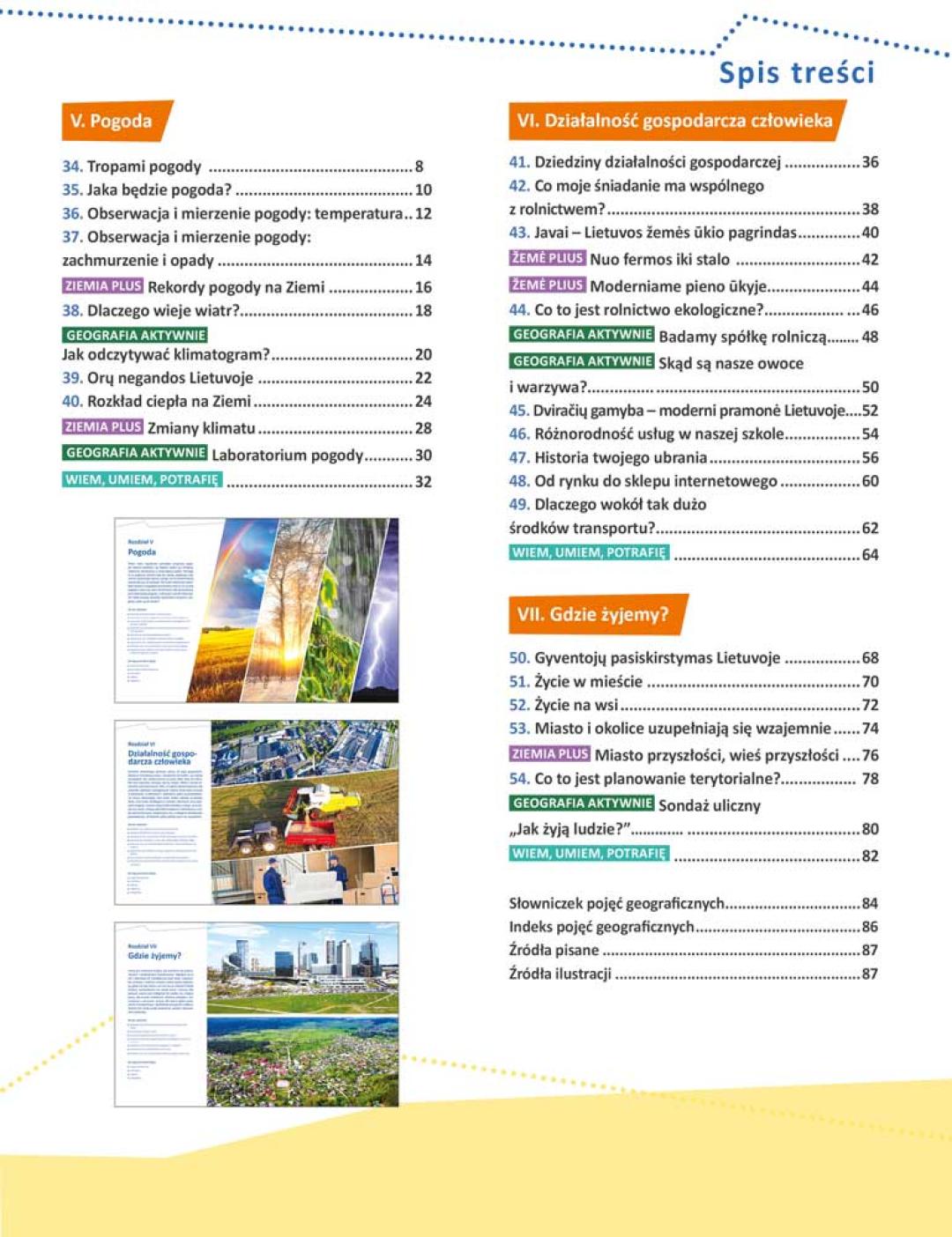 Pagrindines temas papildys patrauklios ir įtraukiančios pasirenkamosios temos. Mokomąją medžiagą papildys realybės kontekstai iš įvairiausių Lietuvos ir pasaulio vietų. Gausi dalykinė, kruopščiai didaktiškai parengta ir į mokinį orientuota iliustracinė medžiaga skatins atrasti, nagrinėti, domėtis. Daug dėmesio skiriama galimybėms diferencijuoti ugdymą, atlikti į ugdymo programą įtrauktus privalomuosius geografinius tyrimus, ugdyti gebėjimus bei įgūdžius.