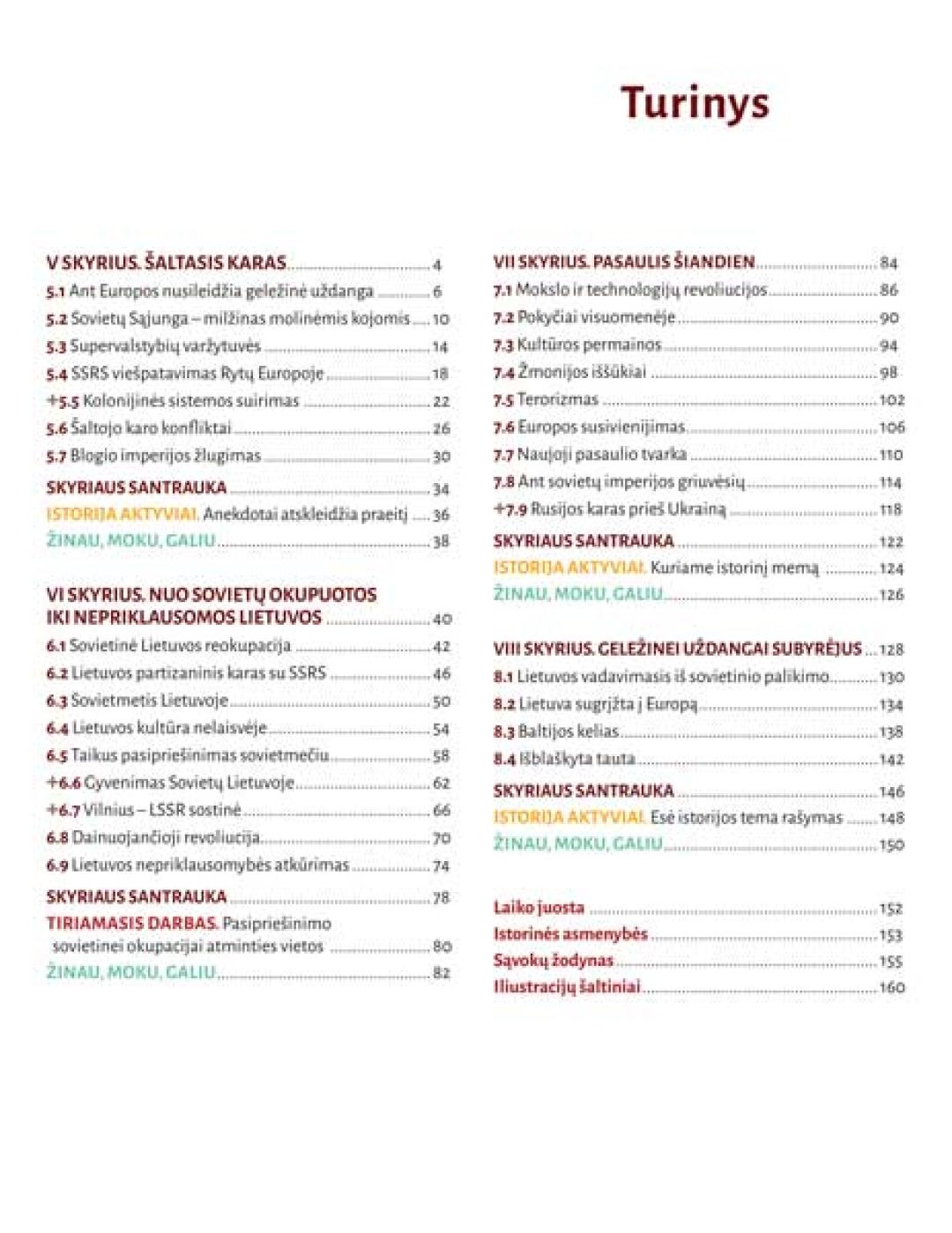 10 (II gimnazijos) klasei skirto vadovėlio antroje dalyje nagrinėjami Naujausiųjų laikų epochos pasaulio ir Lietuvos praeities įvykiai nuo Šaltojo karo bei sovietinės Lietuvos reokupacijos iki šių dienų aktualijų. Šalia pagrindinių temų pateikiamos papildomos temos „Plius“ bei „Istorija aktyviai“ veiklos, skirtos padengti 30 % mokytojo laisvai pasirenkamo turinio. Vadovėlyje taip pat rasite tiriamąjį darbą, skirtą pasipriešinimo sovietinei okupacijai atminties vietoms, skyriaus santraukas, žinių ir kompetencijų patikros puslapius „Žinau, moku, galiu“.