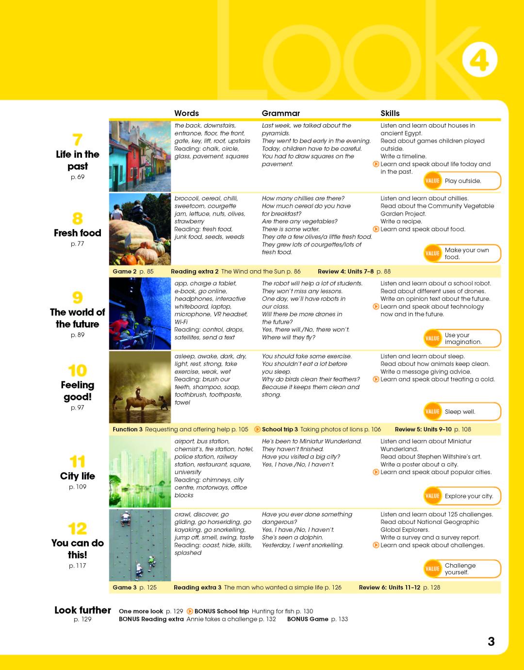 Vadovėlis „Look 4“ orientuotas į A1/A2 kalbos mokėjimo lygį ir gali būti naudojamas mokant anglų kalbos ketvirtaisiais mokymosi metais 5 klasėje.