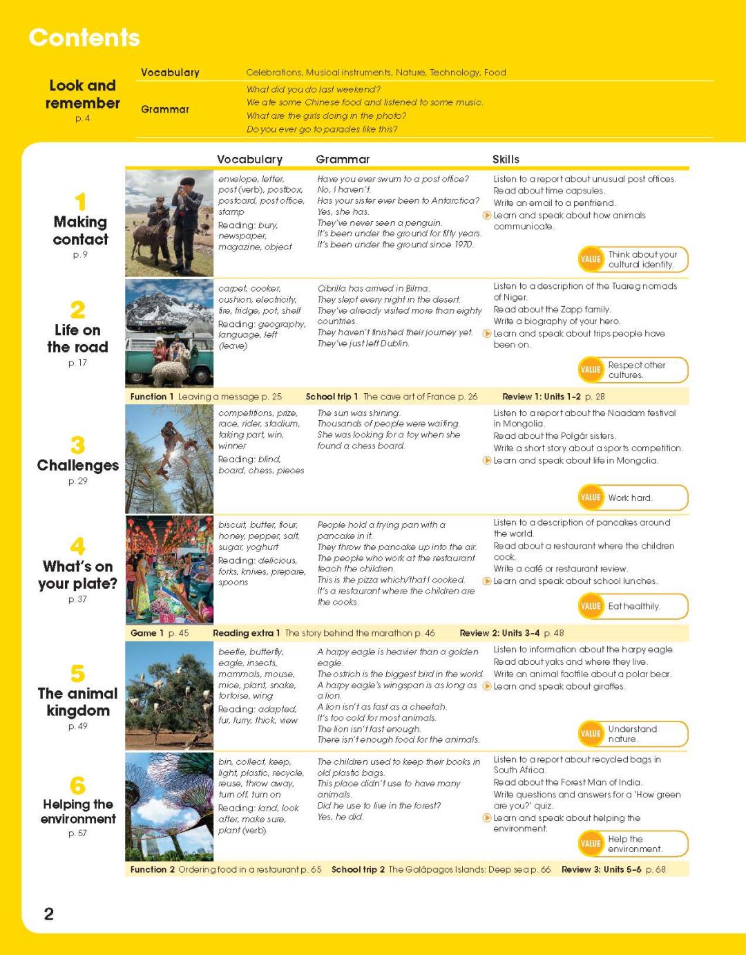 Šio mokomųjų priemonių kurso ašis yra kalbos mokymasis ir vertybinių nuostatų stiprinimas per pasaulio pažinimą - skiriama ypatingai daug dėmesio vertybinių nuostatų integravimui į ugdymo turinį, kurios atsiskleidžia ne tik iliustracijose, bet taip pat ir tekstuose, klausymo užduotyse, kiekviename vadovėlio skyriuje plėtojama atskira vertybė, akcentuojama pasaulyje egzistuojanti įvairovė bei individo unikalumas.