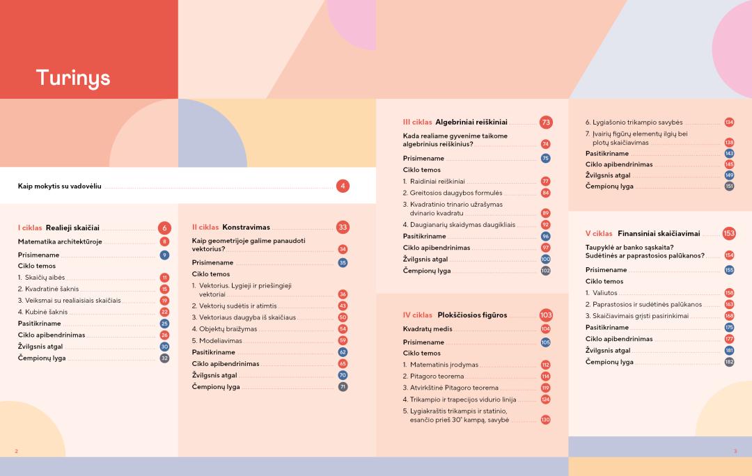 Matematikos vadovėlio komplektą 8 klasei sudaro: