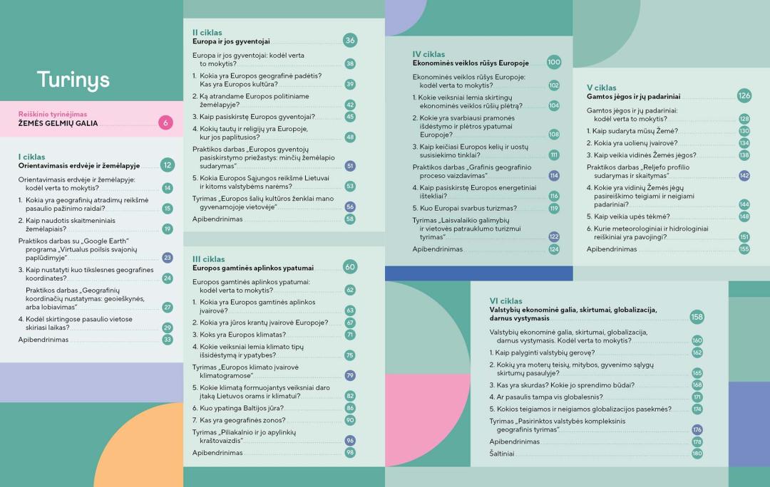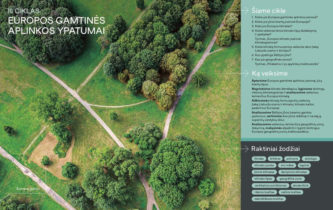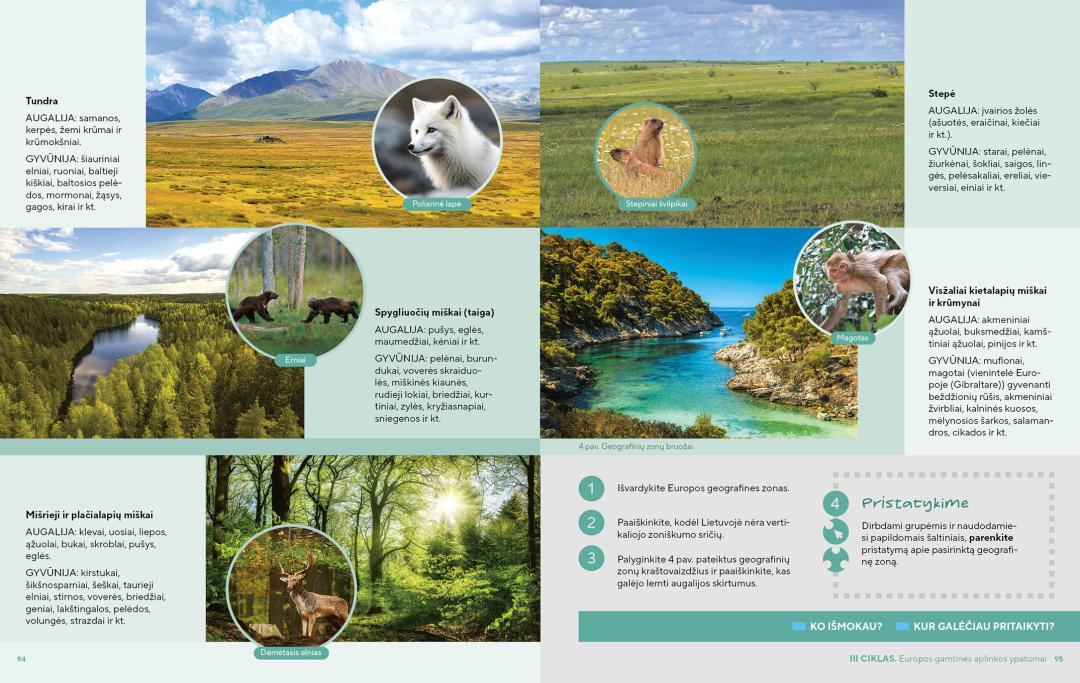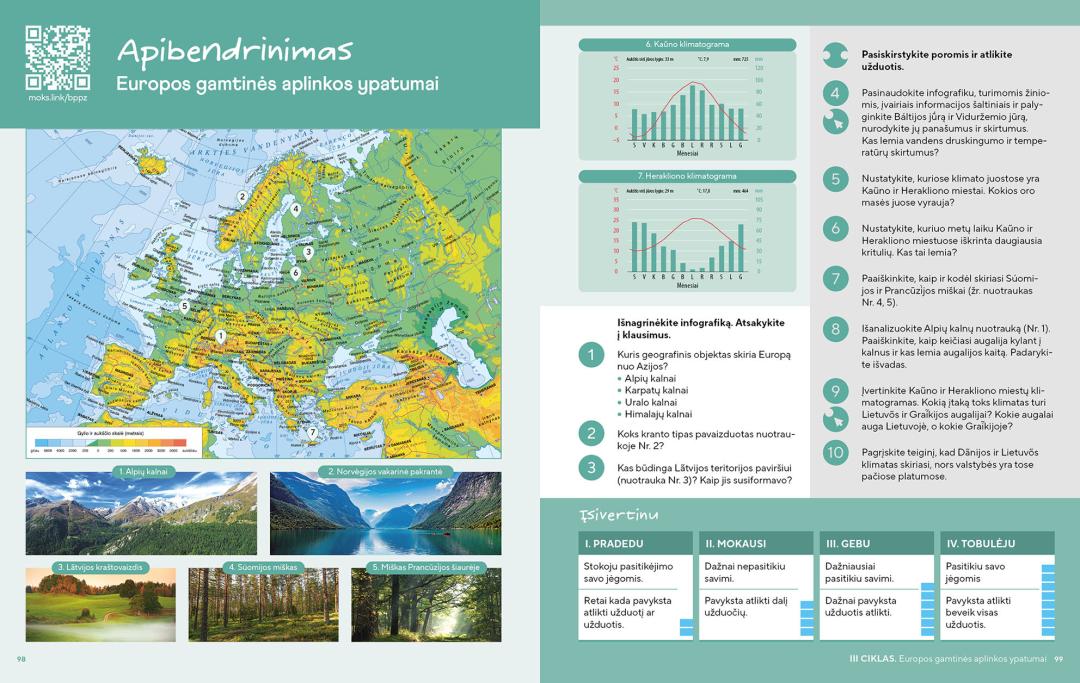 • teorinę medžiagą, informacinius grafikus, duomenų diagramas, temai aktualias nuotraukas, schemas ir žemėlapius;