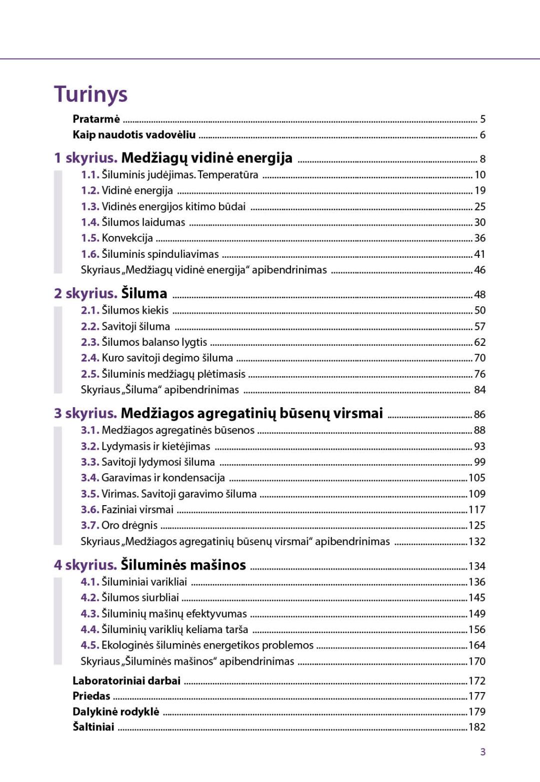 Šis vadovėlis – pirmoji fizikos vadovėlio dalis, skirta 9 (I gimnazijos) klasei, padedanti susipažinti su šiluminiais reiškiniais. Jį sudaro keturi skyriai: „Medžiagų vidinė energija“, „Šiluma“, „Medžiagos agregatinės būsenos“ ir „Šiluminiai varikliai“.