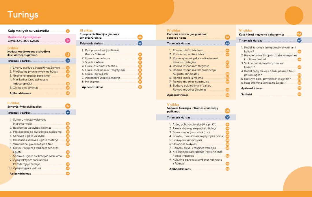 - Svarbiausias datas, raktinius žodžius, pagrindines sąvokas, istorinių asmenybių ir įvykių aprašymus.