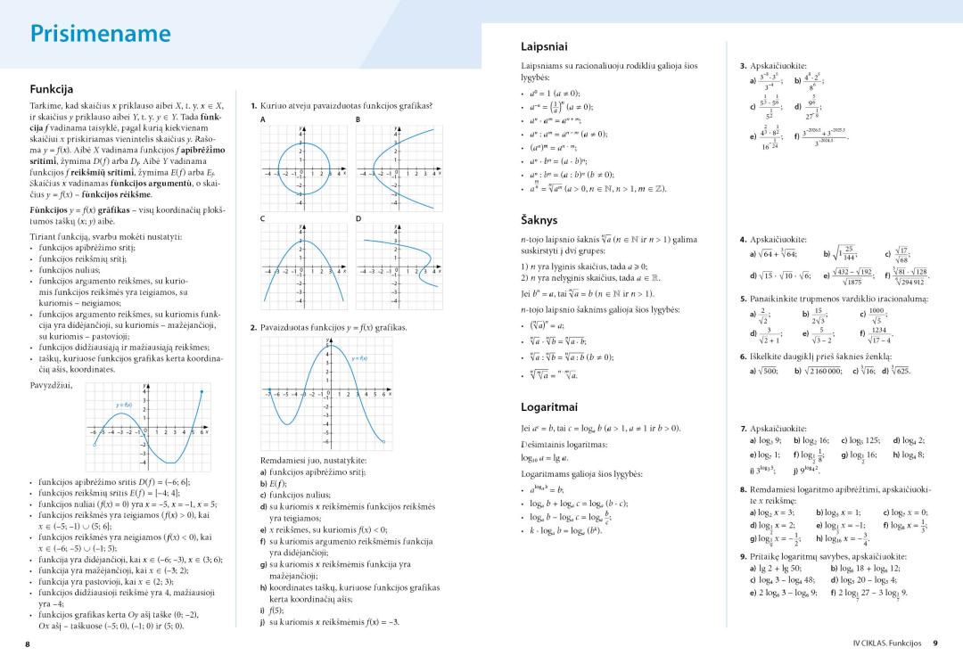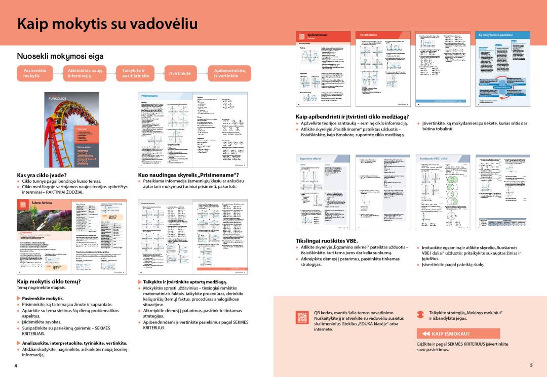 - ciklo temose – pasiekimų (sėkmės) kriterijus, naują teorinę medžiagą, uždavinių sprendimo pavyzdžius, patarimus, apibrėžtis, uždavinius taikymui;