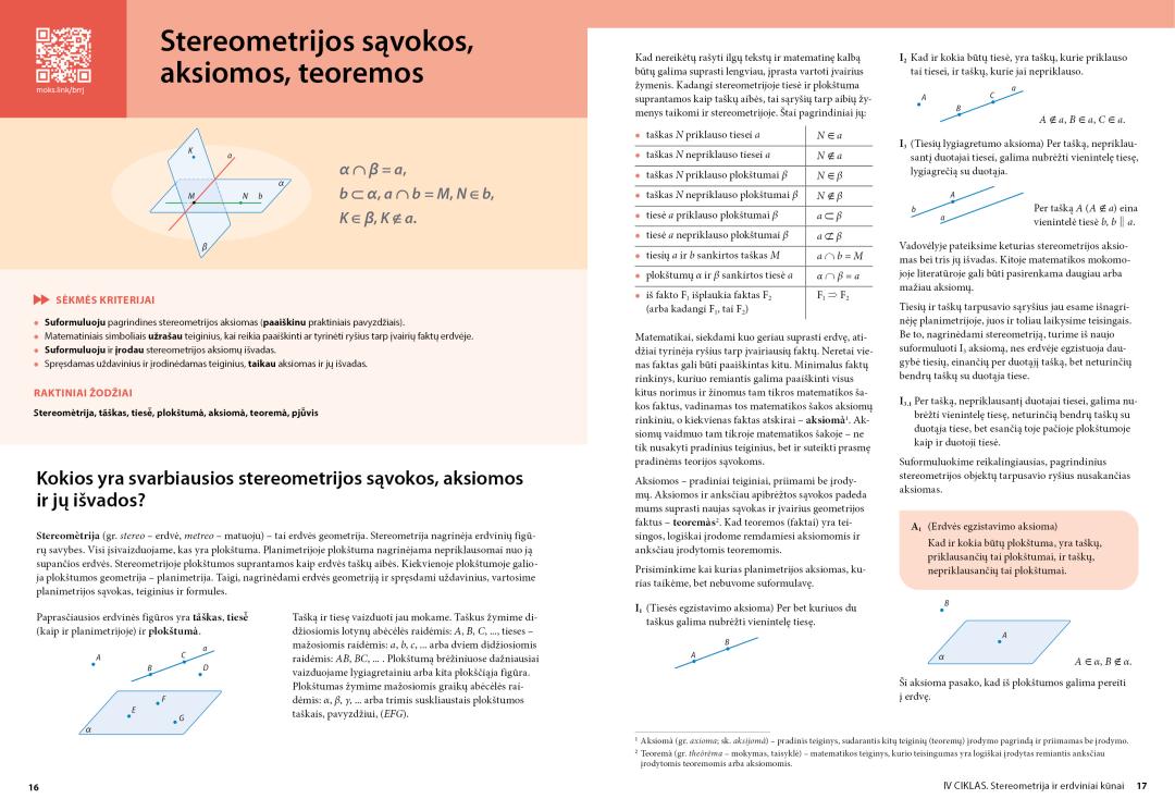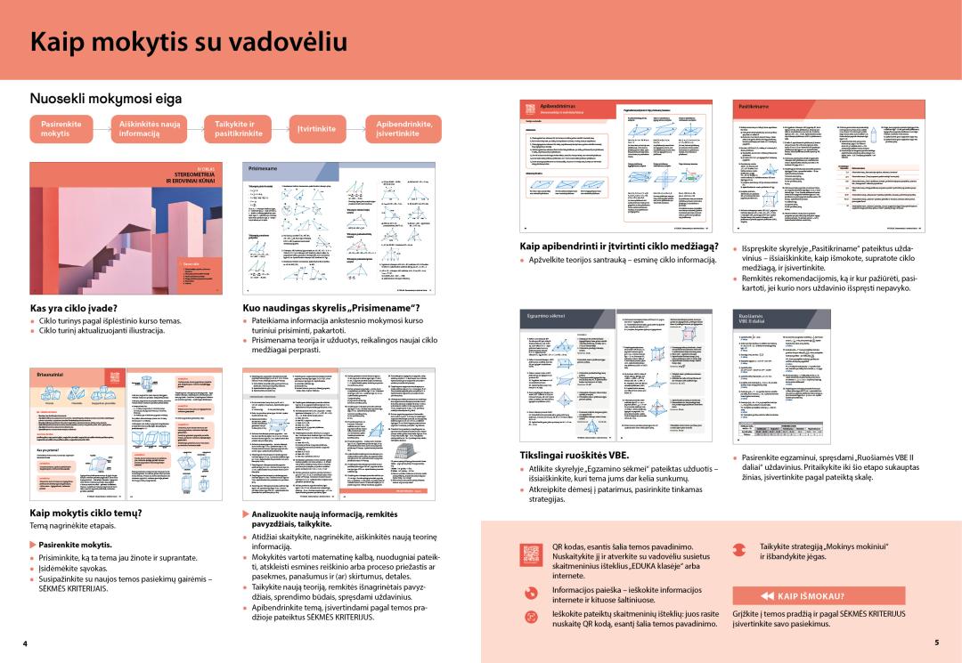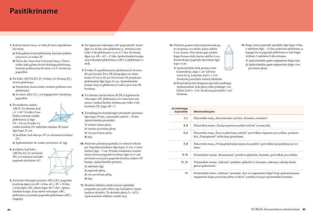 - ciklo temose – nuosekliai išdėstytą naują teorinę medžiagą, sprendimo pavyzdžius, patarimus, uždavinius naujai teorijai taikyti;