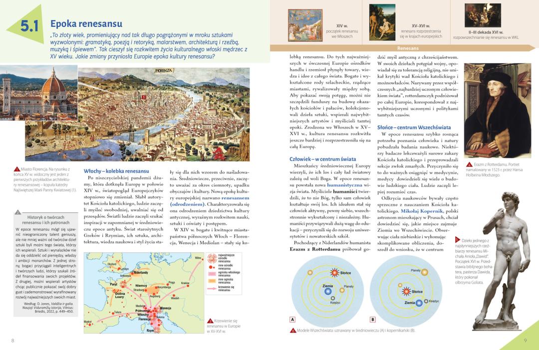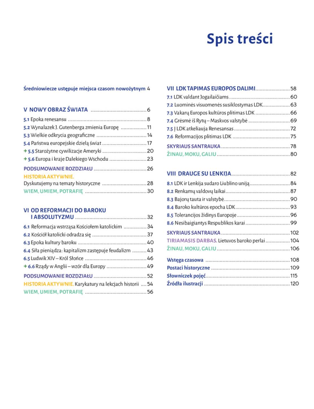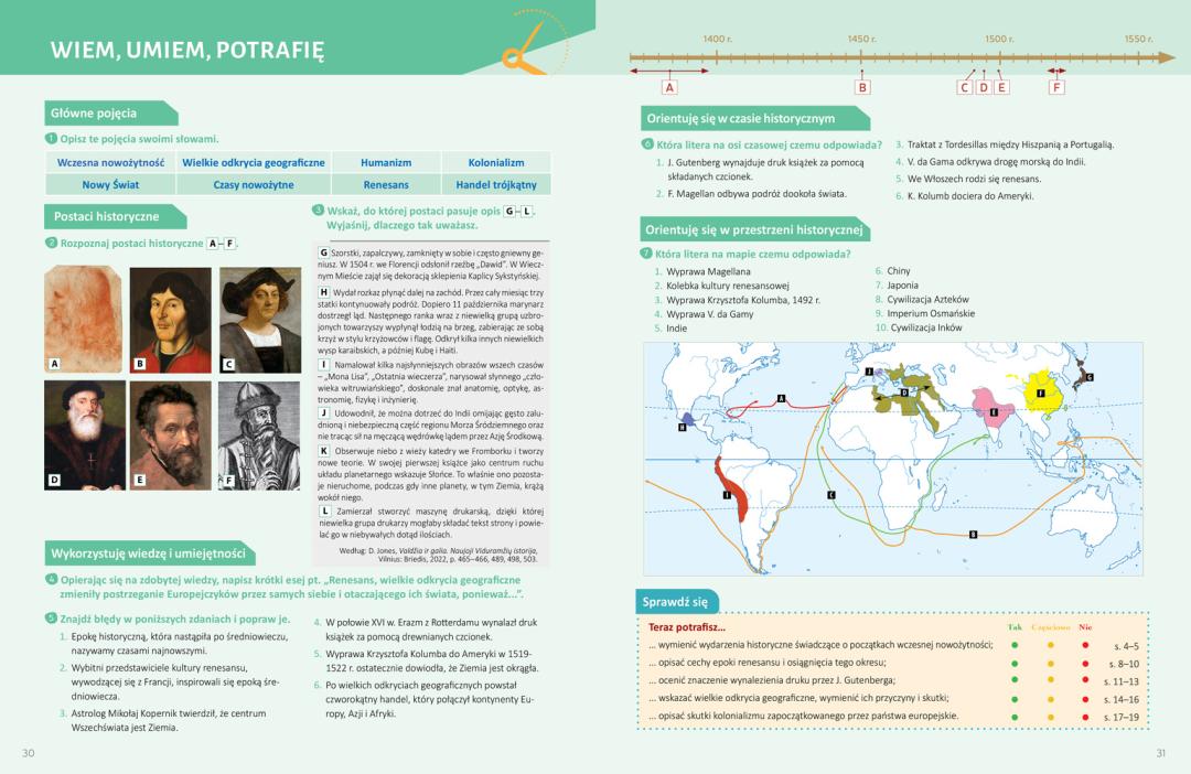Pagal 2022 m. atnaujintą istorijos bendrąją programą parengto vadovėlio „Czas 8“ II (istorijos vadovėlio „Laikas 8“ II dalies atitikmuo lenkų kalba) dalyje supažindinama su svarbiausiomis ankstyvųjų laikų epochos istorijos asmenybėmis, sąvokomis, datomis, įvykiais bei reiškiniais pasaulyje, Europoje ir Lietuvoje.