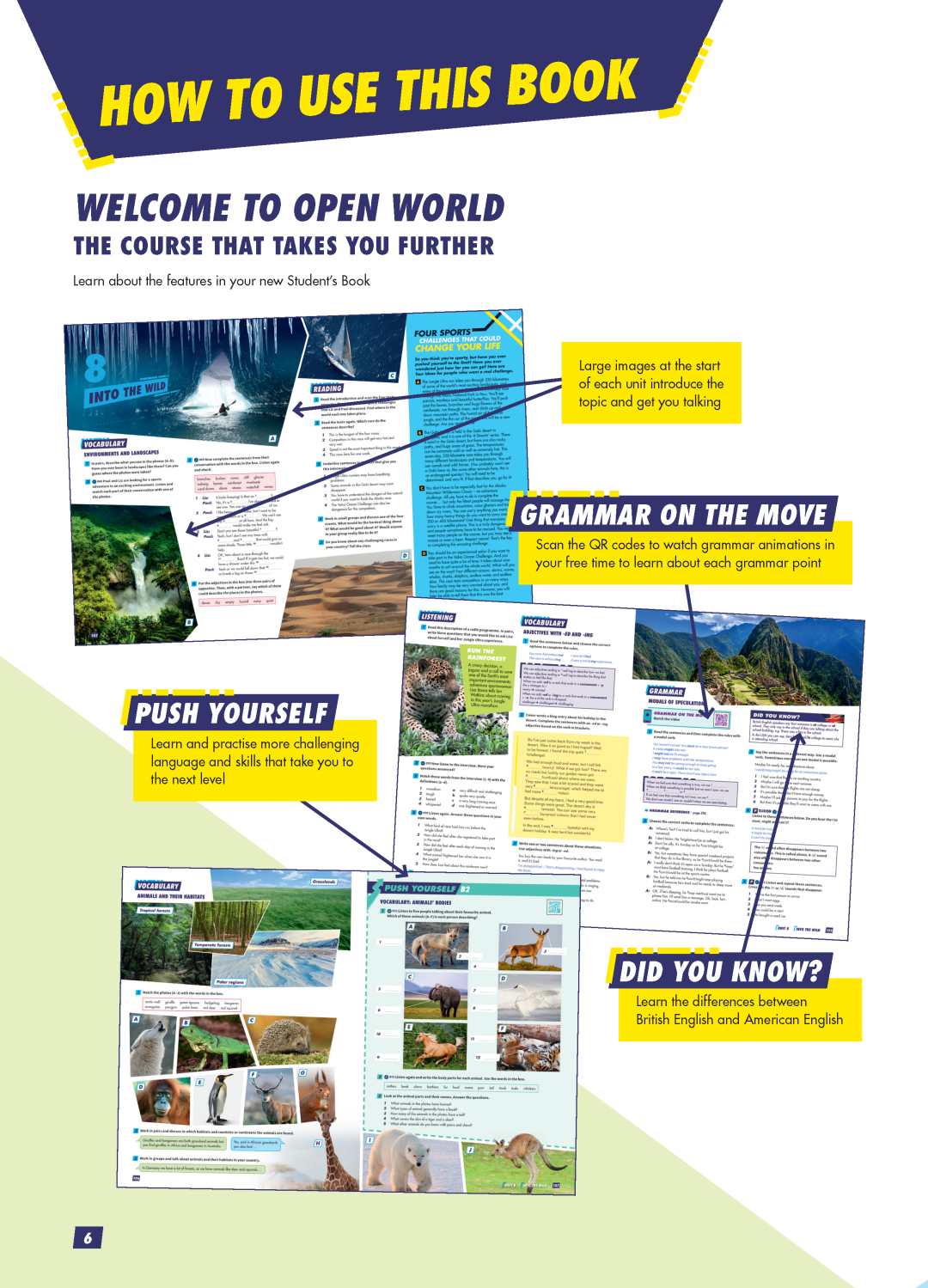 „Open World B1“ (Cambridge University Press, 2019) – tai modernus, turiningas ir interaktyvus kursas, kuriame daugiausia dėmesio skiriama ne tik akademiniams pasiekimams, bet ir gyvenimo įgūdžiams, kad mokiniai įgytų kompetencijų, reikalingų asmeniniam tolesniam gyvenimui. Puikiai atnaujintas turinys atspindi šių dienų paauglių ir jaunimo pasaulėžiūrą, aktualijas. Vadovėlyje daug dėmesio skiriama mokinių kompetencijų ugdymo, tarpdalykinių temų integravimo sritims, įvairios užduotys įgalina vartoti anglų kalbą platesniuose kontekstuose. Išskirtinis dėmesys skiriamas skaitmeninei kompetencijai, mediacijai, reflektavimo gebėjimams bei grupinei mediacijai. Pateiktos atnaujintas bendrąsias programas atitinkančios temos, apimančios socialinius ir ekonominius santykius, identiteto suvokimą bei mokymosi visą gyvenimą, savivaldaus mokymosi aspektus.