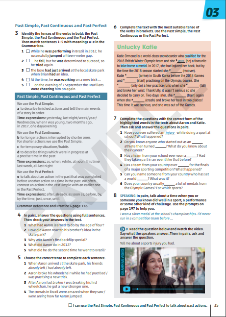 - Mokinio knyga – integruoti mokomosios medžiagos komplektai, gramatinės ir teorinės medžiagos sąvadas su pratimais. 10 praktinių skyrių apima kalbinius gebėjimus bei gramatines ir leksines žinias. Naujų žodžių bankas (Word list) ir kartojimo (Revision) atvartai pateikiami kiekvieno skyriaus pabaigoje. Vadovėlyje taip pat yra 5 gyvenimo įgūdžių (Life skills) ugdymo atvartai. Video (Watch and reflect) atvartuose, remiantis video siužetais, pateikiamos kalbėjimo, žodyno plėtros ir rašymo užduotys. Gramatikos (Grammar Reference) sąvade pateikiamos taisyklės, pavyzdžiai, pratimai. Kalbos vartojimo (Use of English) medžiagos sąvade pateikiami įvairių užduočių tipų modeliai. Vadovėlyje taip pat pateikiamos kalbėjimo įskaitos pavyzdinės užduotys (Communication activities).