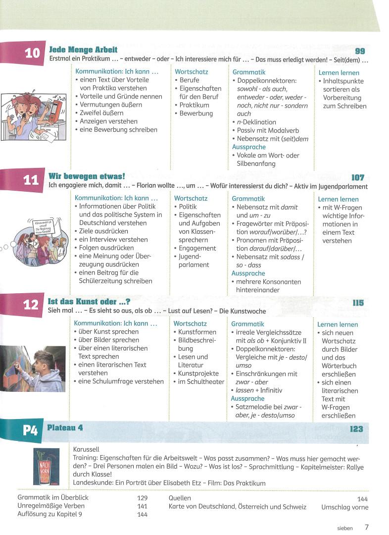 Priešpaskutiniame „Plateau“ puslapyje pateikiama aktuali mokomoji medžiaga, skirta susipažinti su vokiškai kalbančių šalių visuomene ir kultūra. Paskutinis puslapis skirtas darbui su filmu, kuriame parodoma paauglių grupės iš Vokietijos gyvenimo kasdienybė. Mokiniai atlieka įvairias užduotis prieš filmo peržiūrą, filmo žiūrėjimo metu ir po filmo peržiūros.