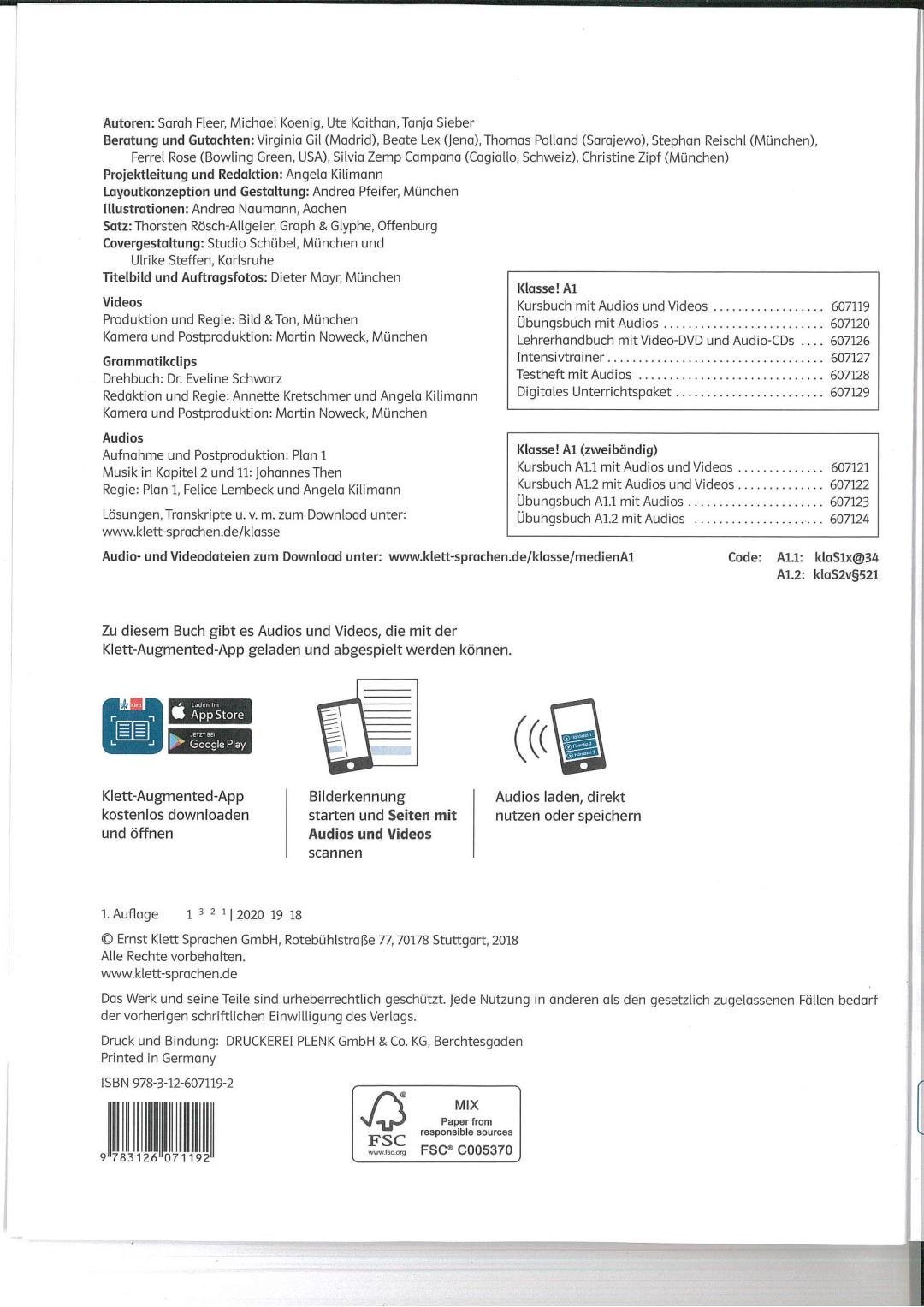 - pratybų knyga su garso ir vaizdo medžiaga, pateikiama mobilioje programėlėje „Klett Augmented“;