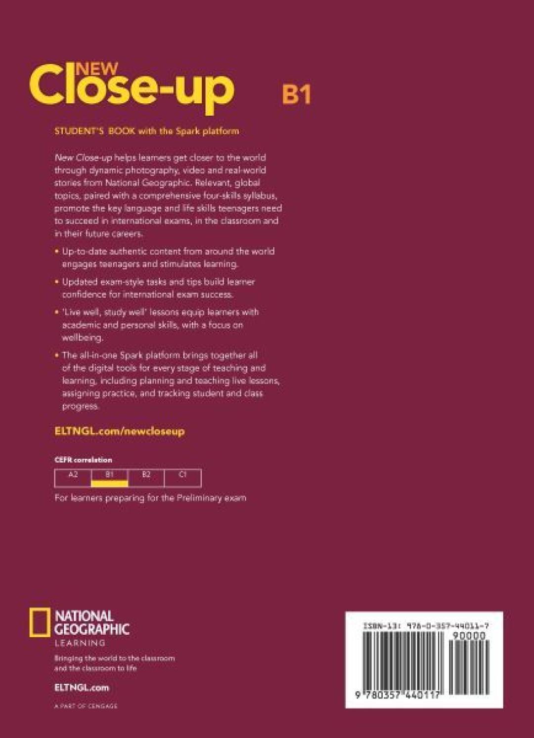 „New Close-Up“ – tai modernus, turiningas ir turtingas kursas, kuriame pagrindinis dėmesys skiriamas gyvenimui ir gyvenimo įgūdžiams, kad mokiniai įgytų kompetencijų, reikalingų akademiniam ir asmeniniam gyvenimui. Suderintas su šių dienų paauglių ir jaunimo pasaulėžiūra, skirtas smalsiems šiuolaikiniams paaugliams, trokštantiems įvairesnių ir įdomesnių žinių. Pateikta medžiaga išsiskiria savo unikaliomis ir ryškiomis nuotraukomis.
