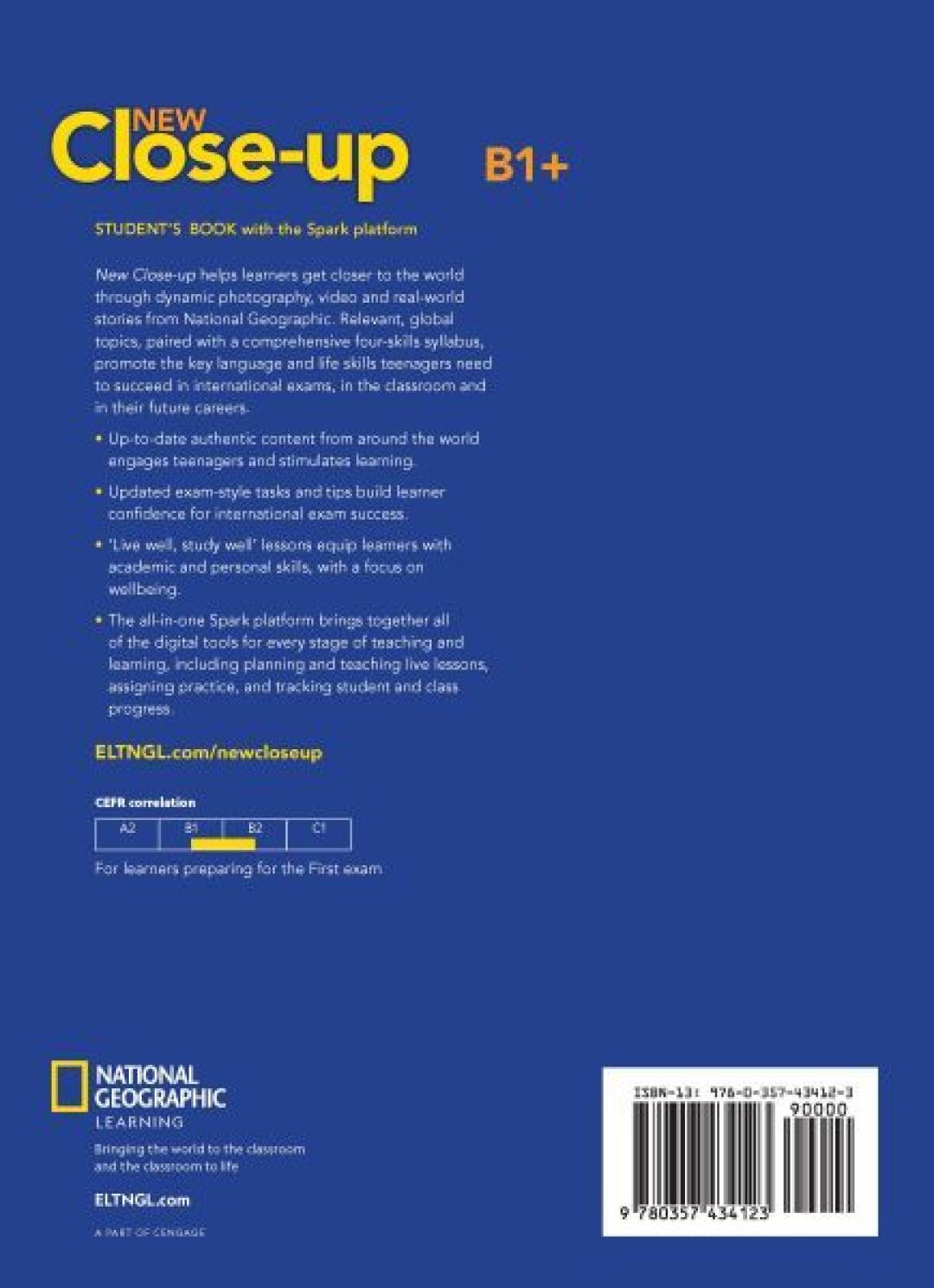 „New Close-Up“ – tai modernus, turiningas ir turtingas kursas, kuriame pagrindinis dėmesys skiriamas gyvenimui ir gyvenimo įgūdžiams, kad mokiniai įgytų kompetencijų, reikalingų akademiniam ir asmeniniam gyvenimui. Suderintas su šių dienų paauglių ir jaunimo pasaulėžiūra, skirtas smalsiems šiuolaikiniams paaugliams, trokštantiems įvairesnių ir įdomesnių žinių. Pateikta medžiaga išsiskiria savo unikaliomis ir ryškiomis nuotraukomis,.