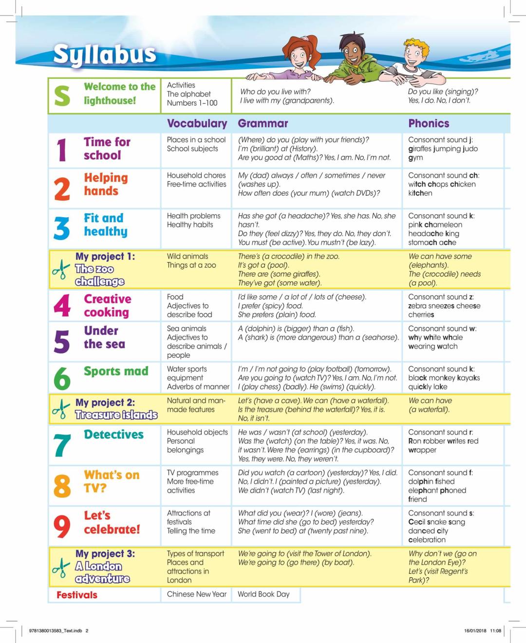 Vadovėlis „Give Me Five! 3“ yra trečioji iš šešių vadovėlių serijos dalis. Raštingumas apima skaitymą ir rašymą. Klausymo, skaitymo, kalbėjimo, rašymo ir vaizdo įrašų peržiūros veiklos integruotos kiekvieno skyriaus pamokose.
