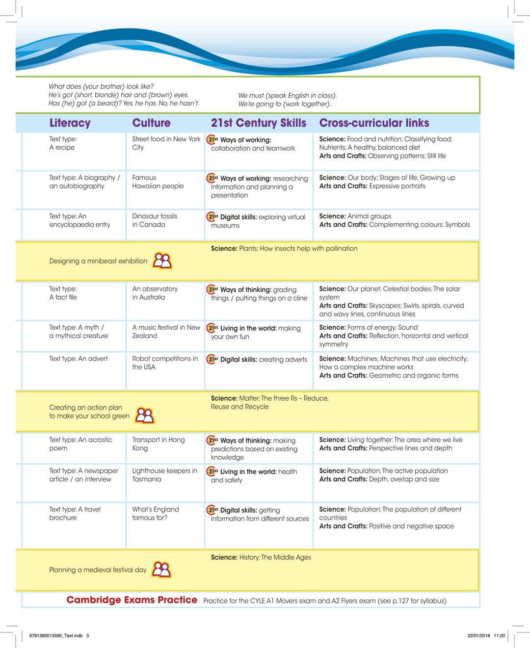 Vadovėlis „Give Me Five! 4“ yra ketvirtoji iš šešių vadovėlių serijos dalis. Raštingumas apima skaitymą ir rašymą. Klausymo, skaitymo, kalbėjimo, rašymo ir vaizdo įrašų peržiūros veiklos integruotos kiekvieno skyriaus pamokose.